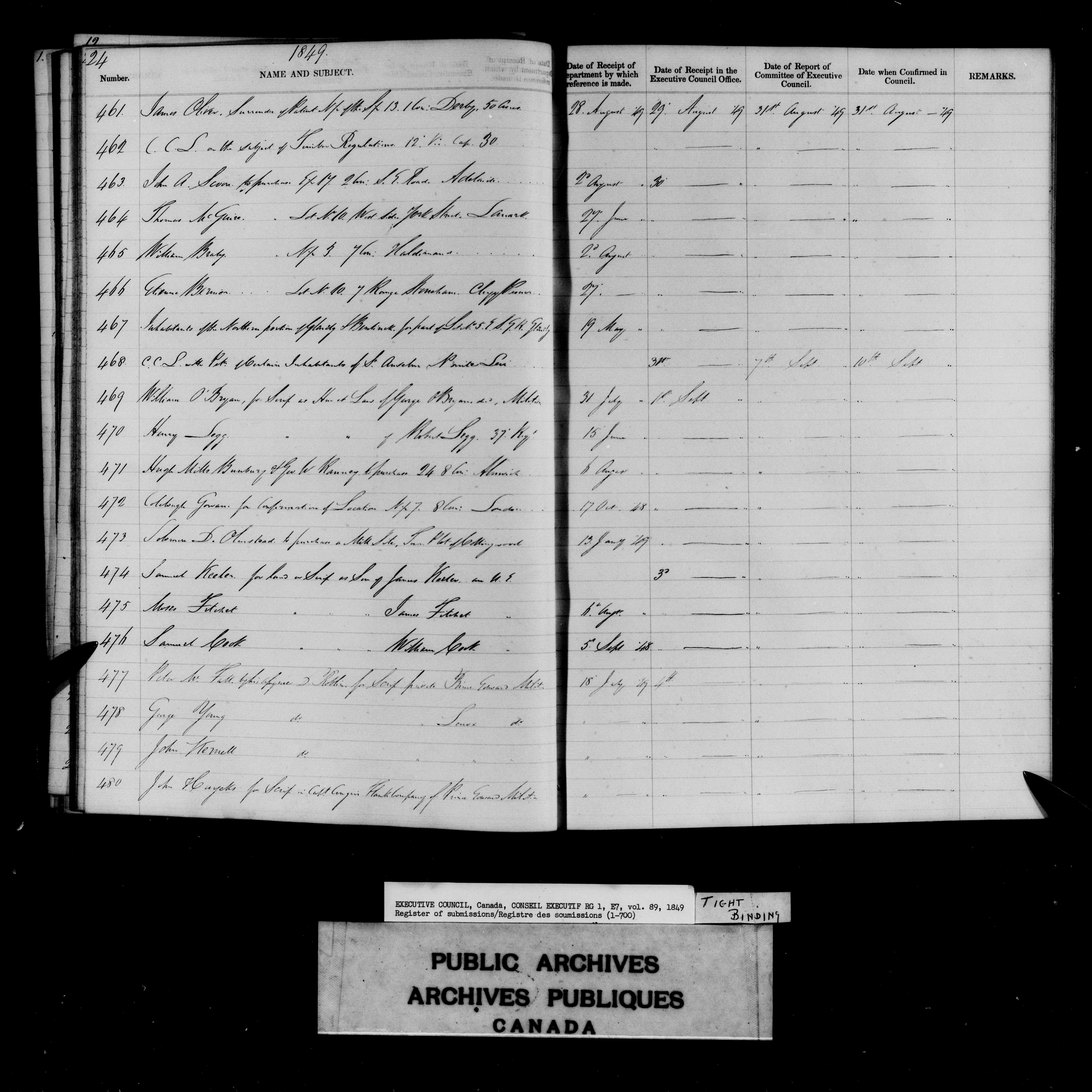 State submissions to the Executive Council [Province of Canada], 1841-1867: indexes and registers : C-10694