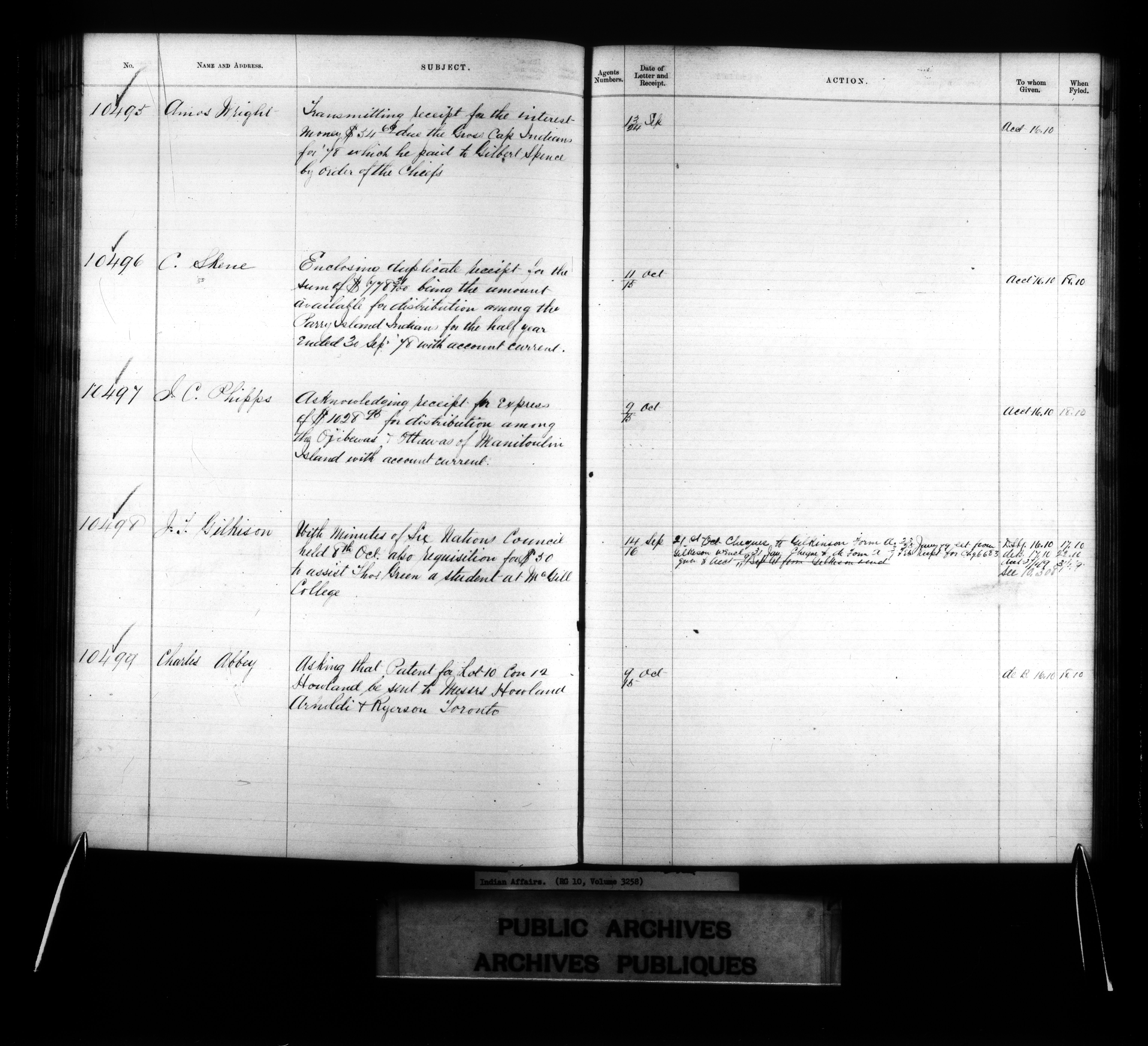 Department of Indian Affairs, Headquarters central registry system :registers, indices and indexed registers : C-10713