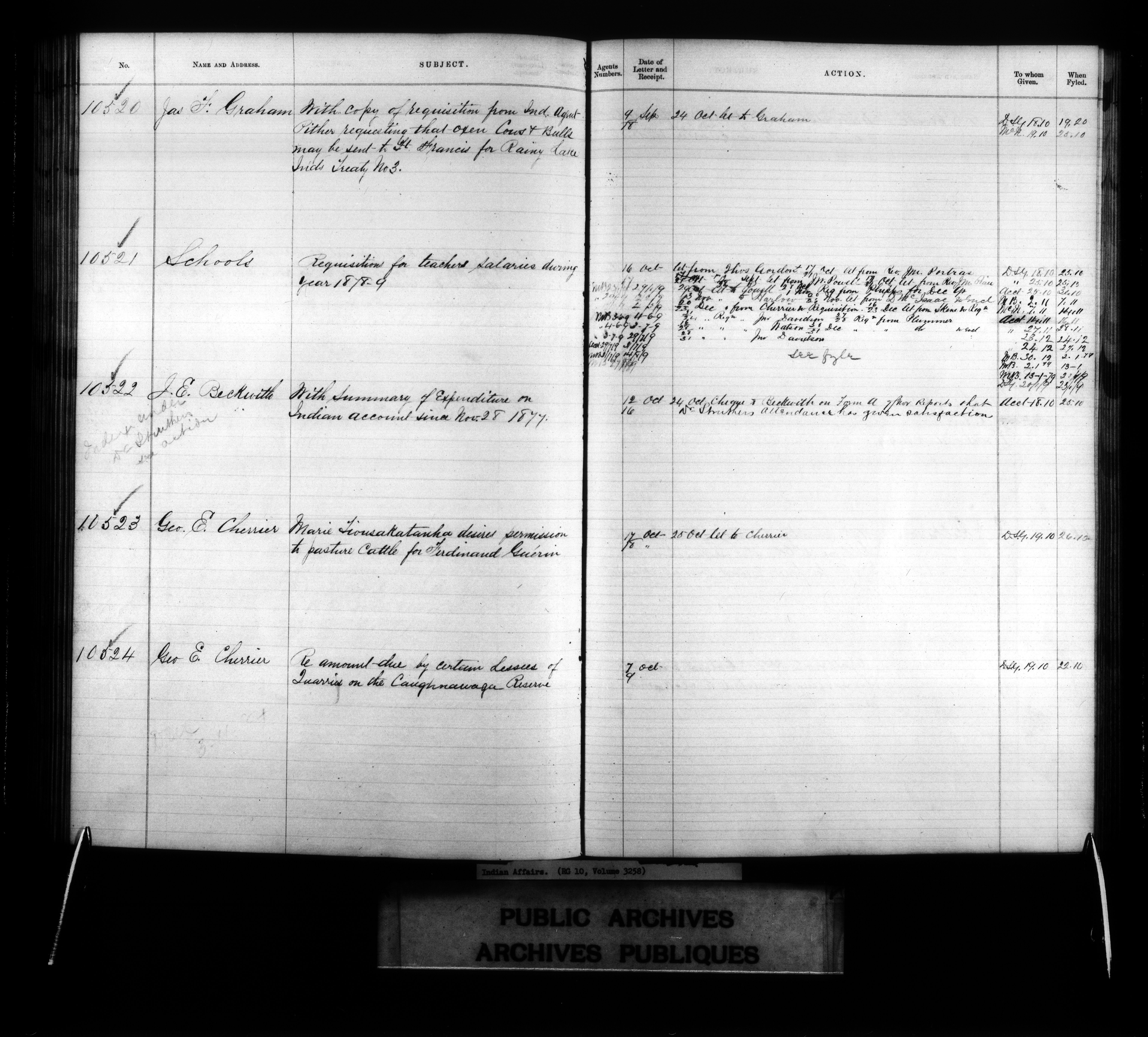 Department of Indian Affairs, Headquarters central registry system :registers, indices and indexed registers : C-10713