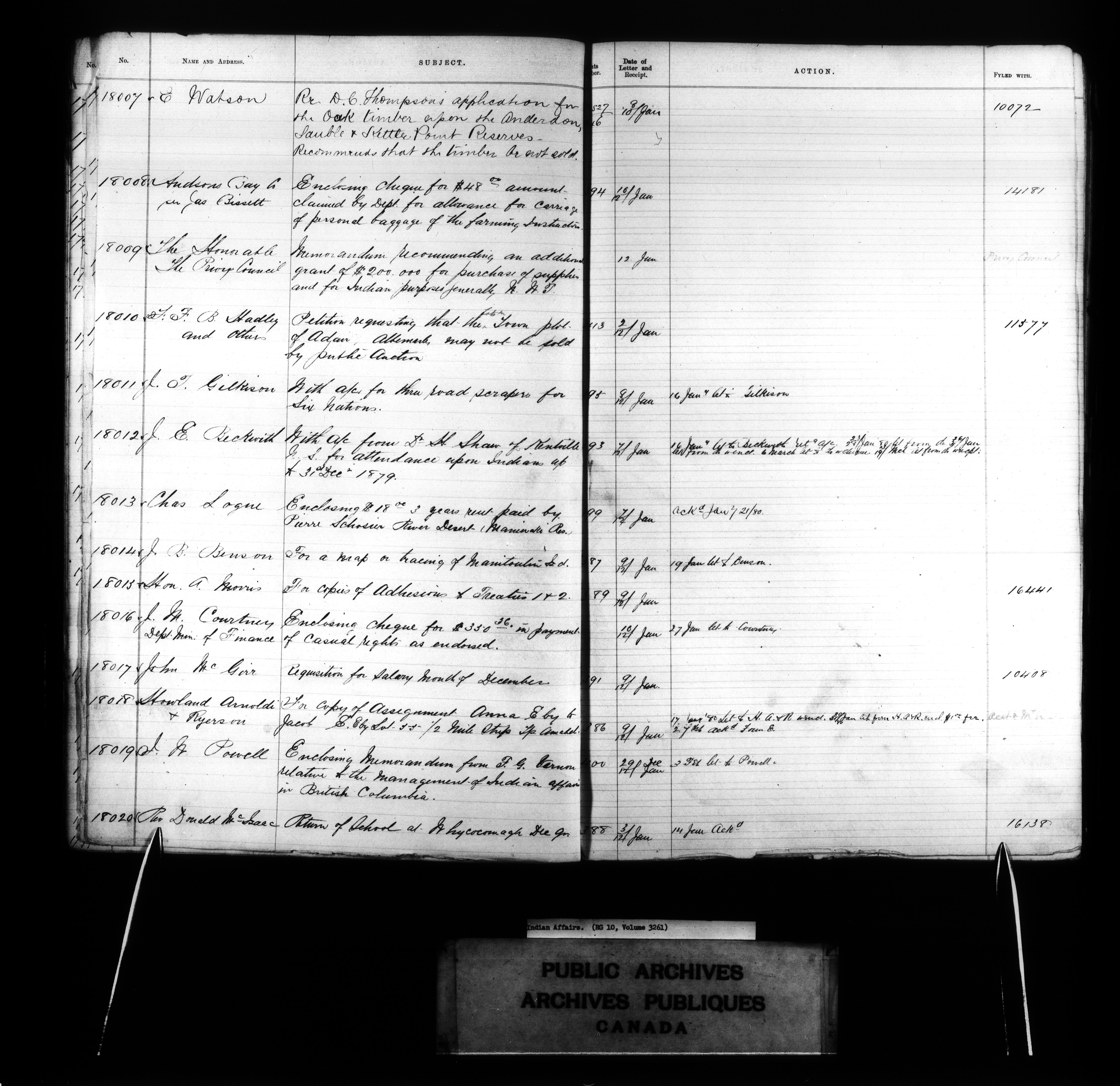 Department of Indian Affairs, Headquarters central registry system :registers, indices and indexed registers : C-10713
