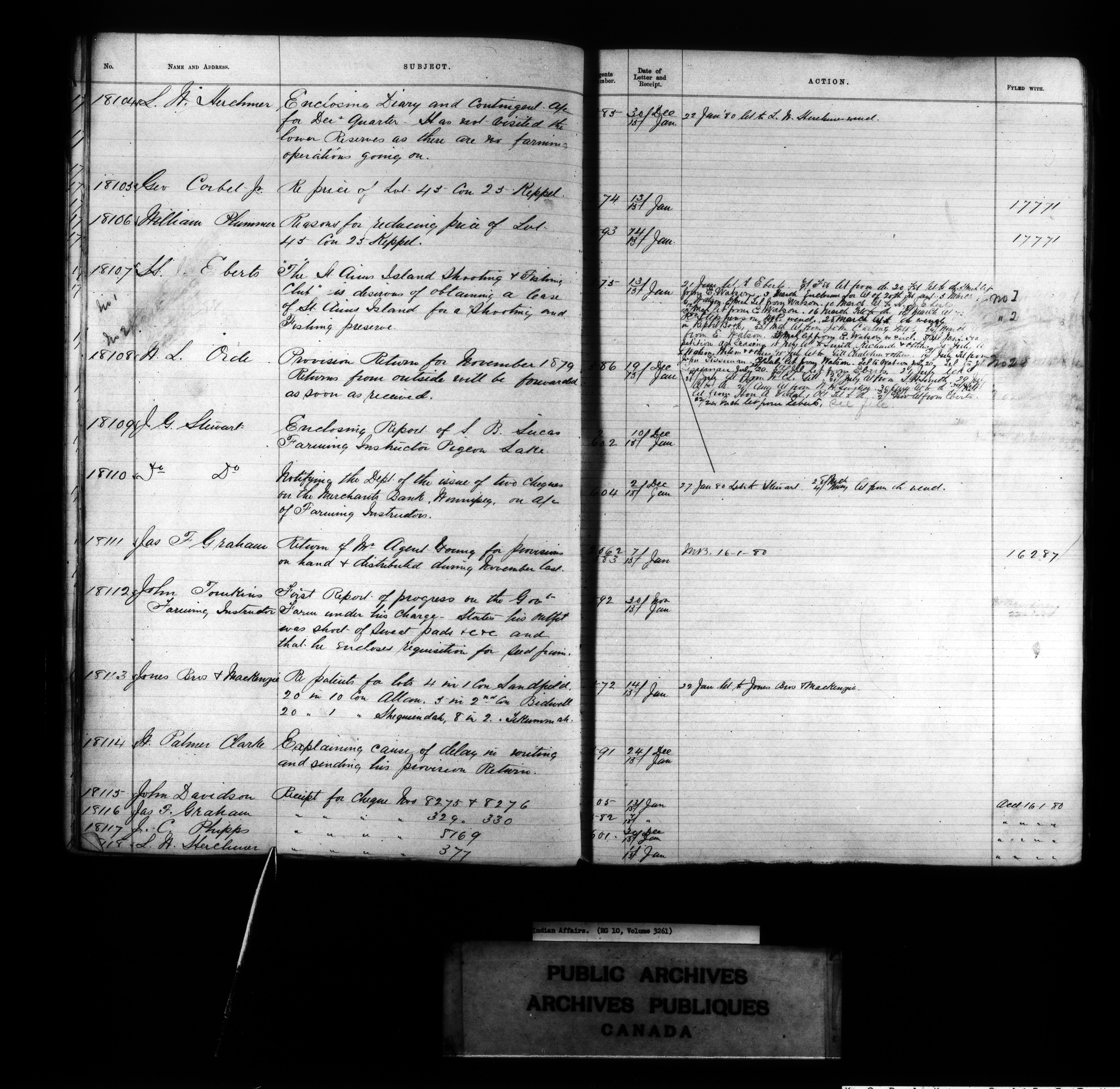Department of Indian Affairs, Headquarters central registry system :registers, indices and indexed registers : C-10713