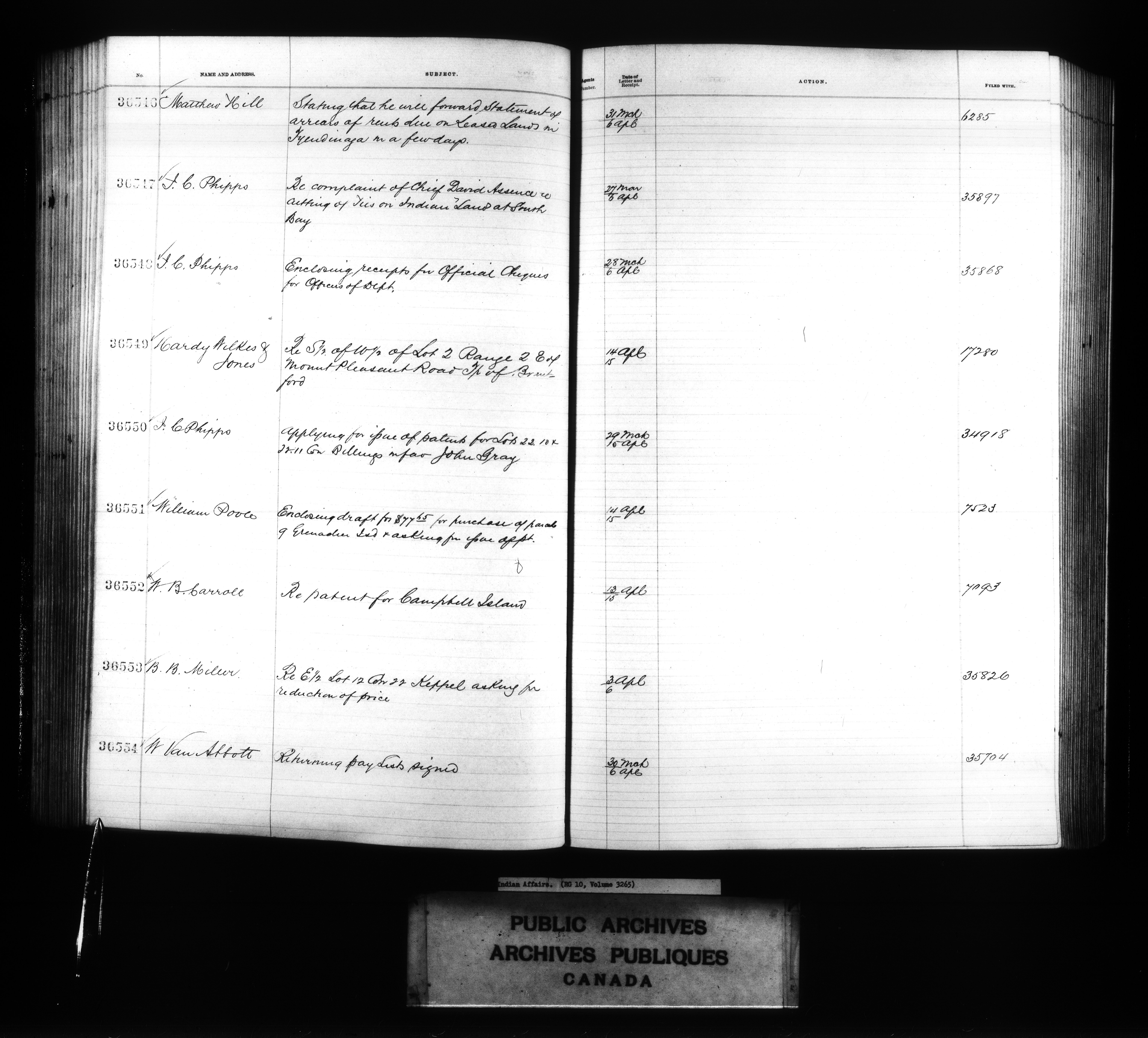 Department of Indian Affairs, Headquarters central registry system :registers, indices and indexed registers : C-10715