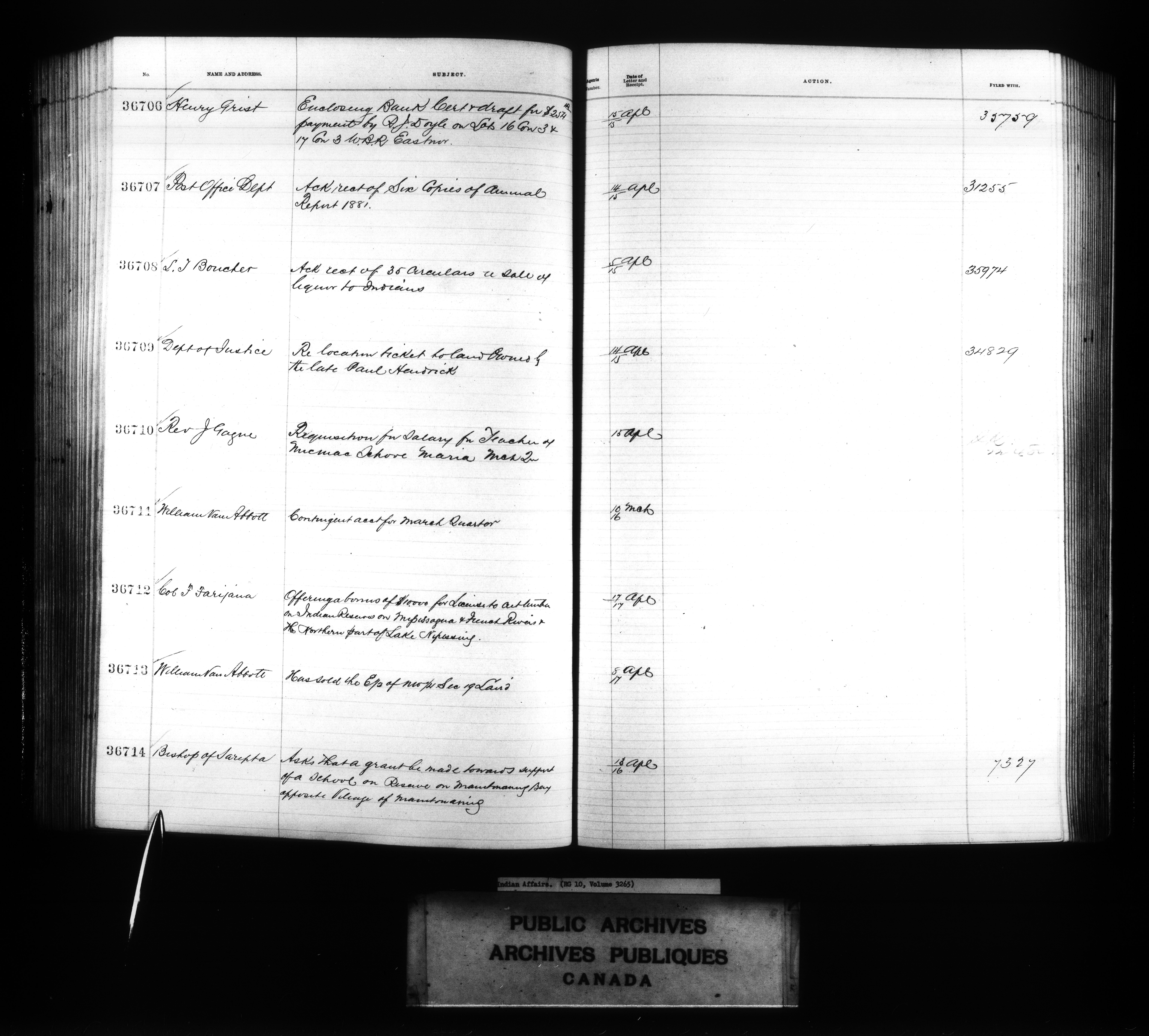 Department of Indian Affairs, Headquarters central registry system :registers, indices and indexed registers : C-10715