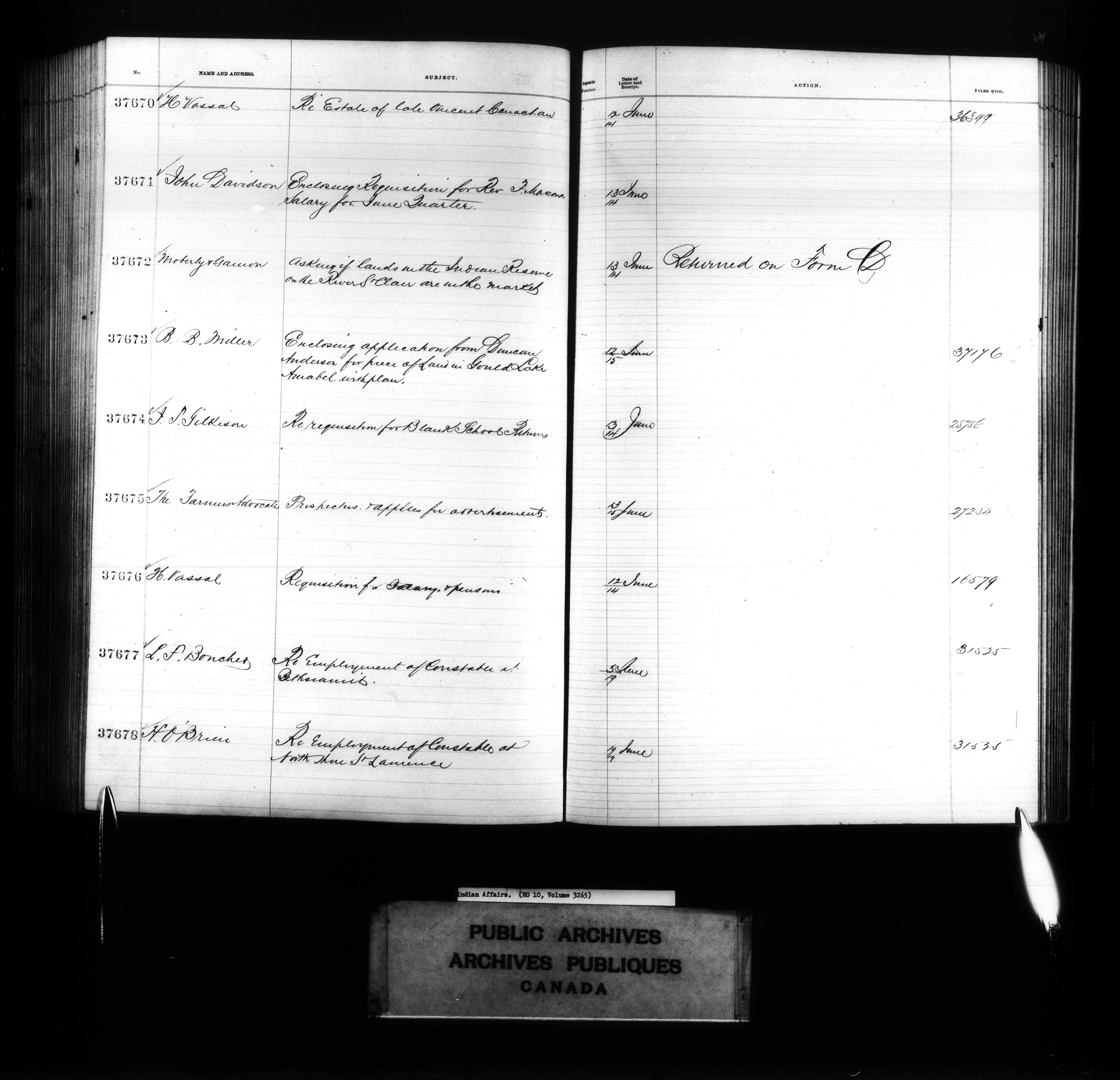 Department of Indian Affairs, Headquarters central registry system :registers, indices and indexed registers : C-10716