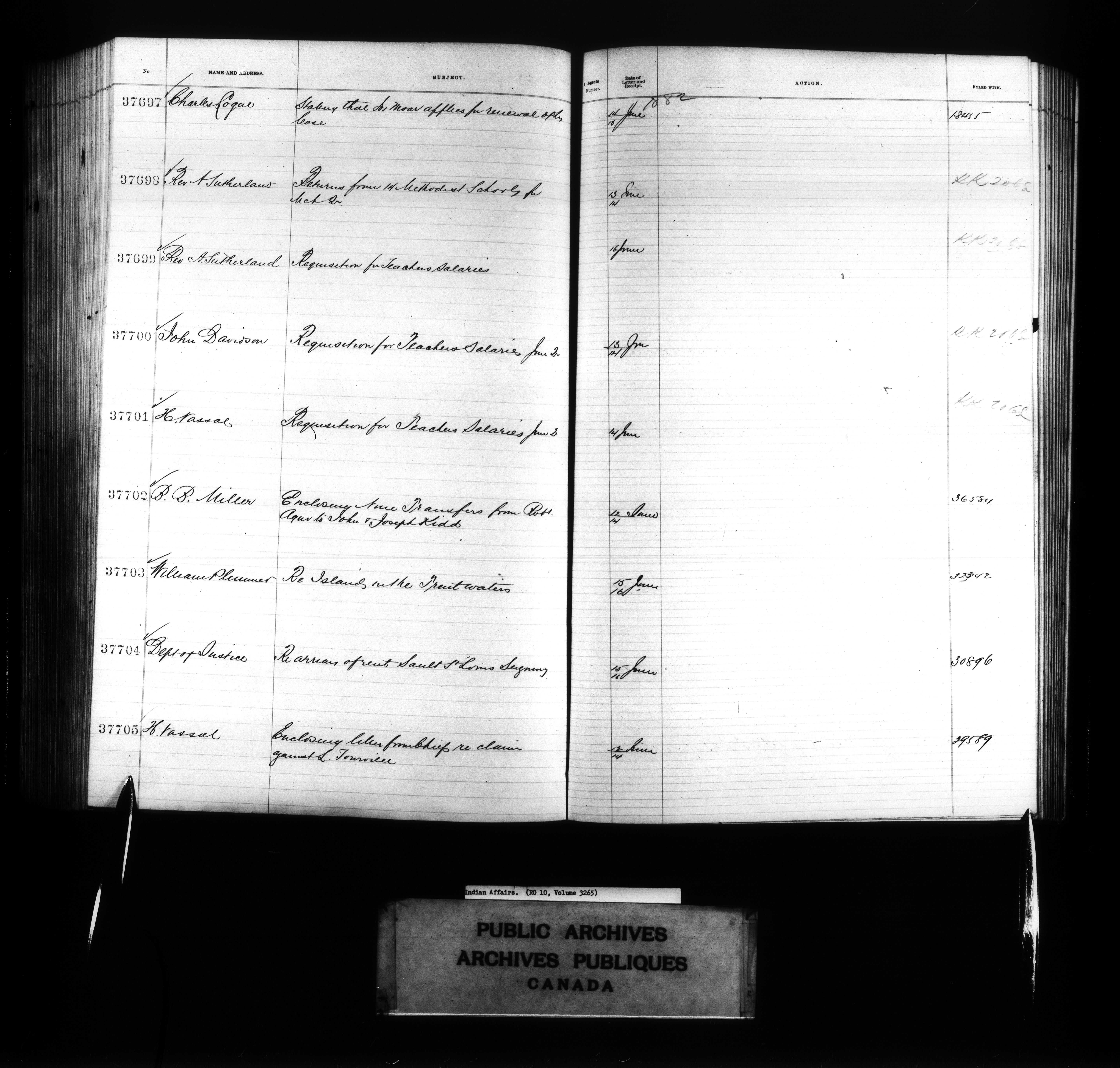 Department of Indian Affairs, Headquarters central registry system :registers, indices and indexed registers : C-10716