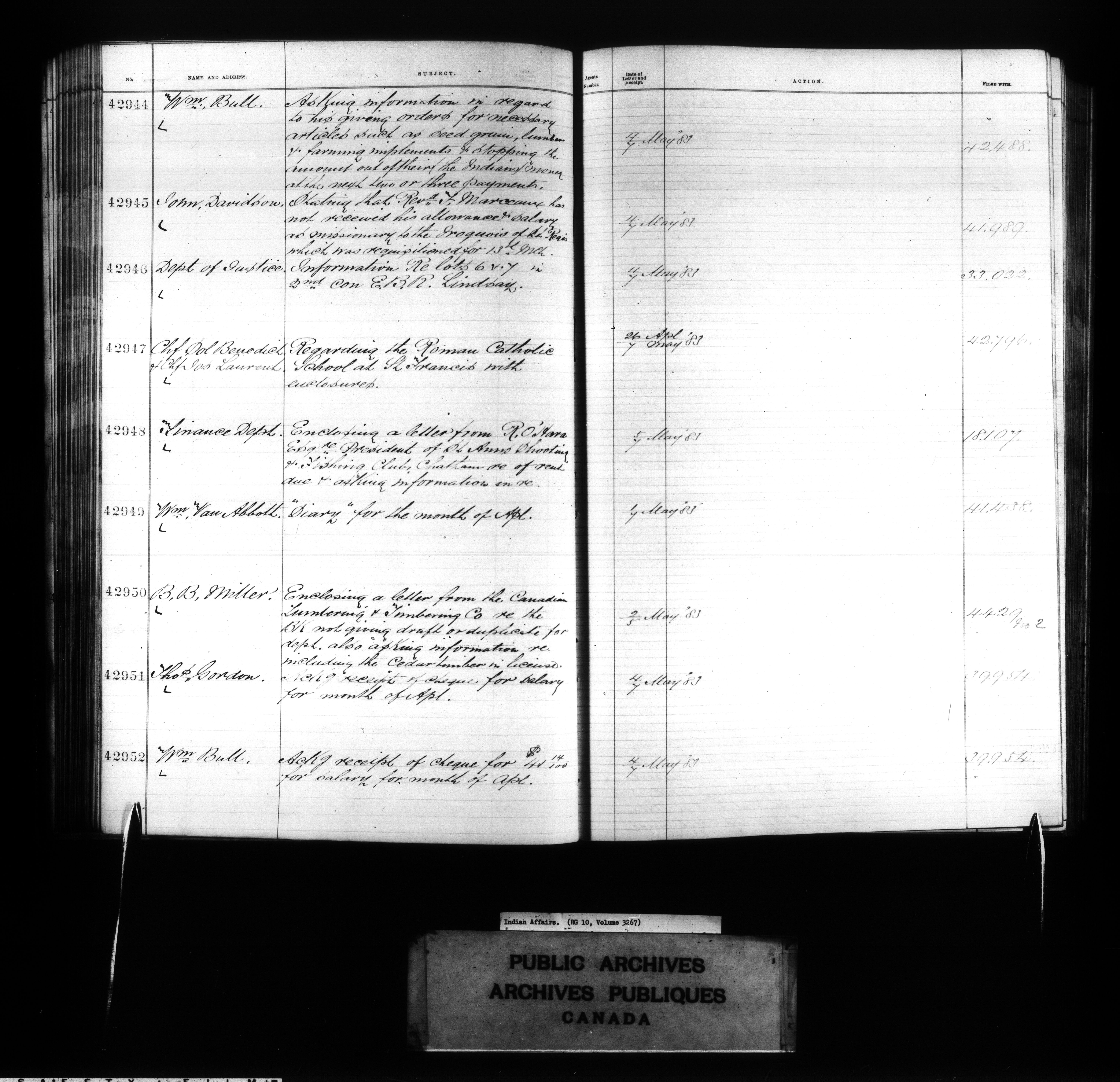 Department of Indian Affairs, Headquarters central registry system :registers, indices and indexed registers : C-10716