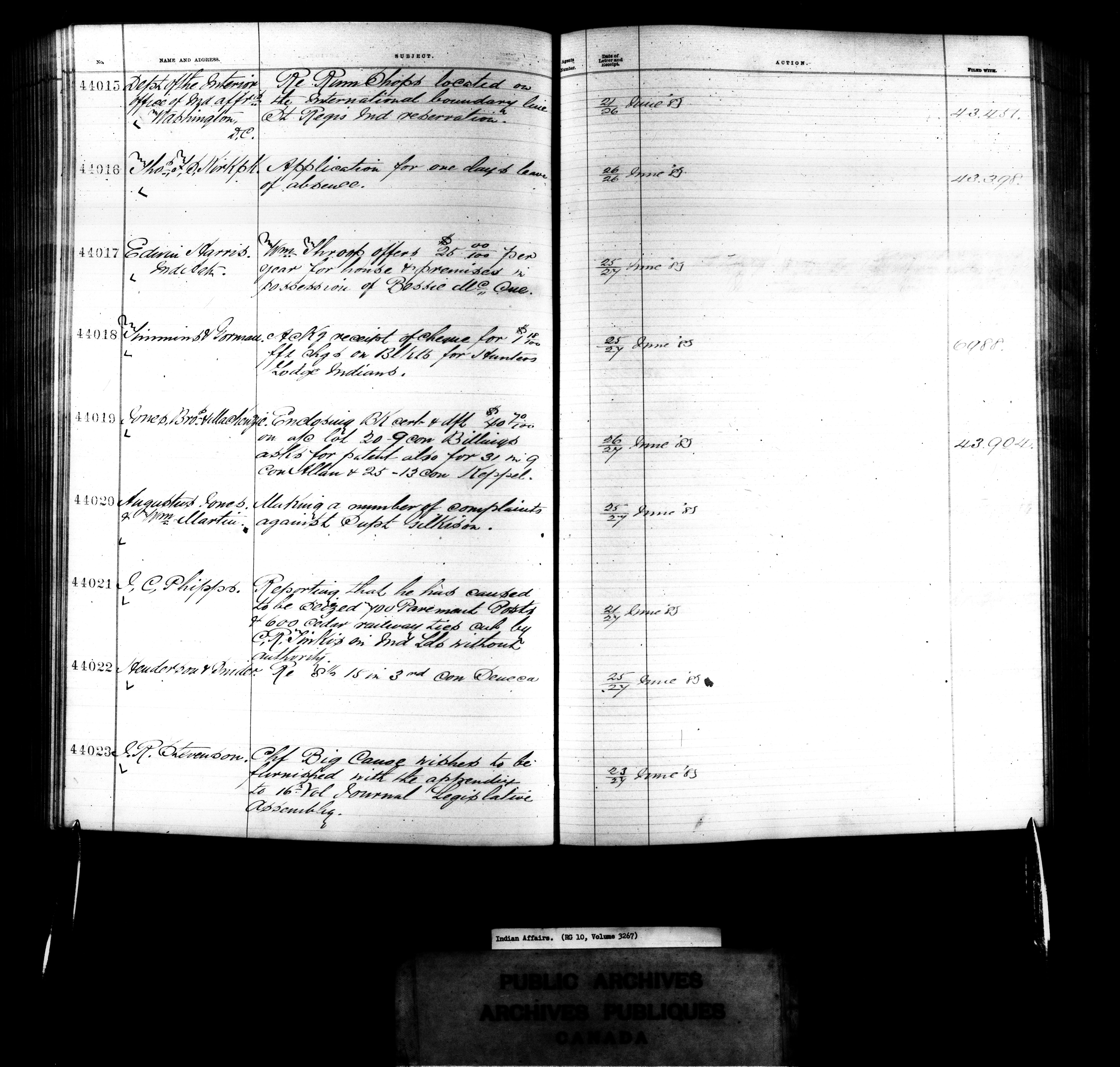 Department of Indian Affairs : Red Series register for Ontario and Quebec - 10717