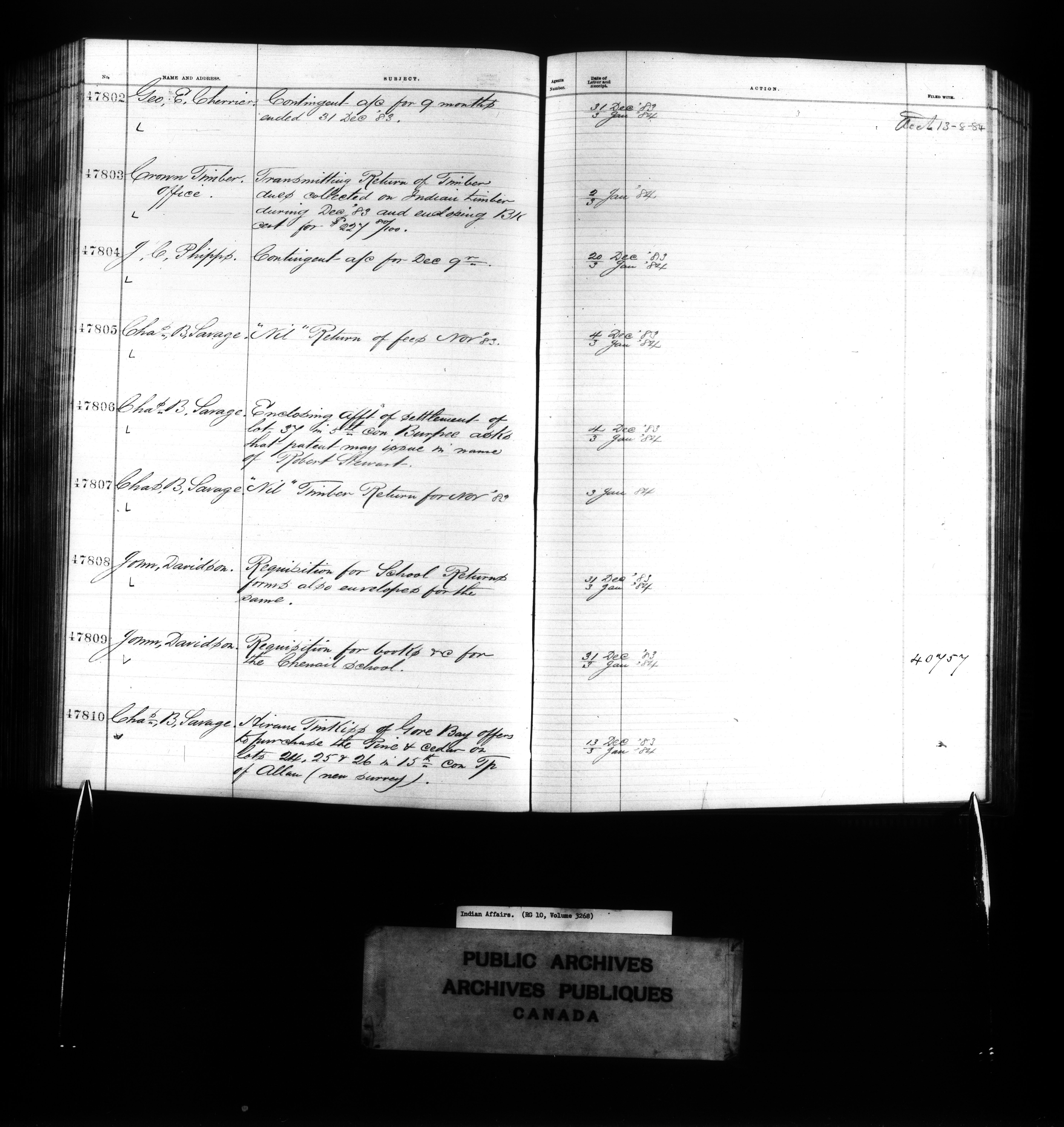 Department of Indian Affairs, Headquarters central registry system :registers, indices and indexed registers : C-10718