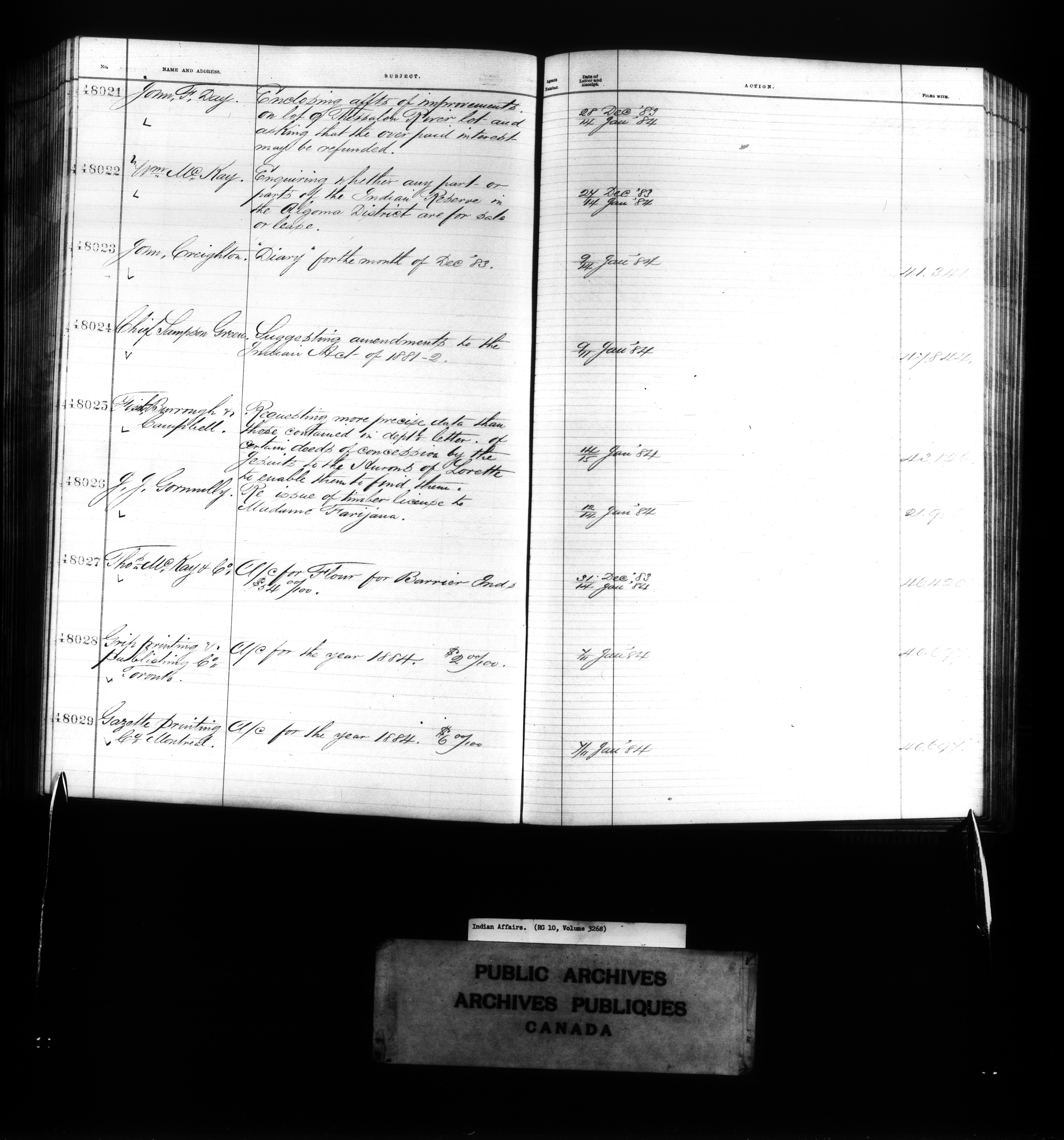 Department of Indian Affairs : Red Series register for Ontario and Quebec - 10718