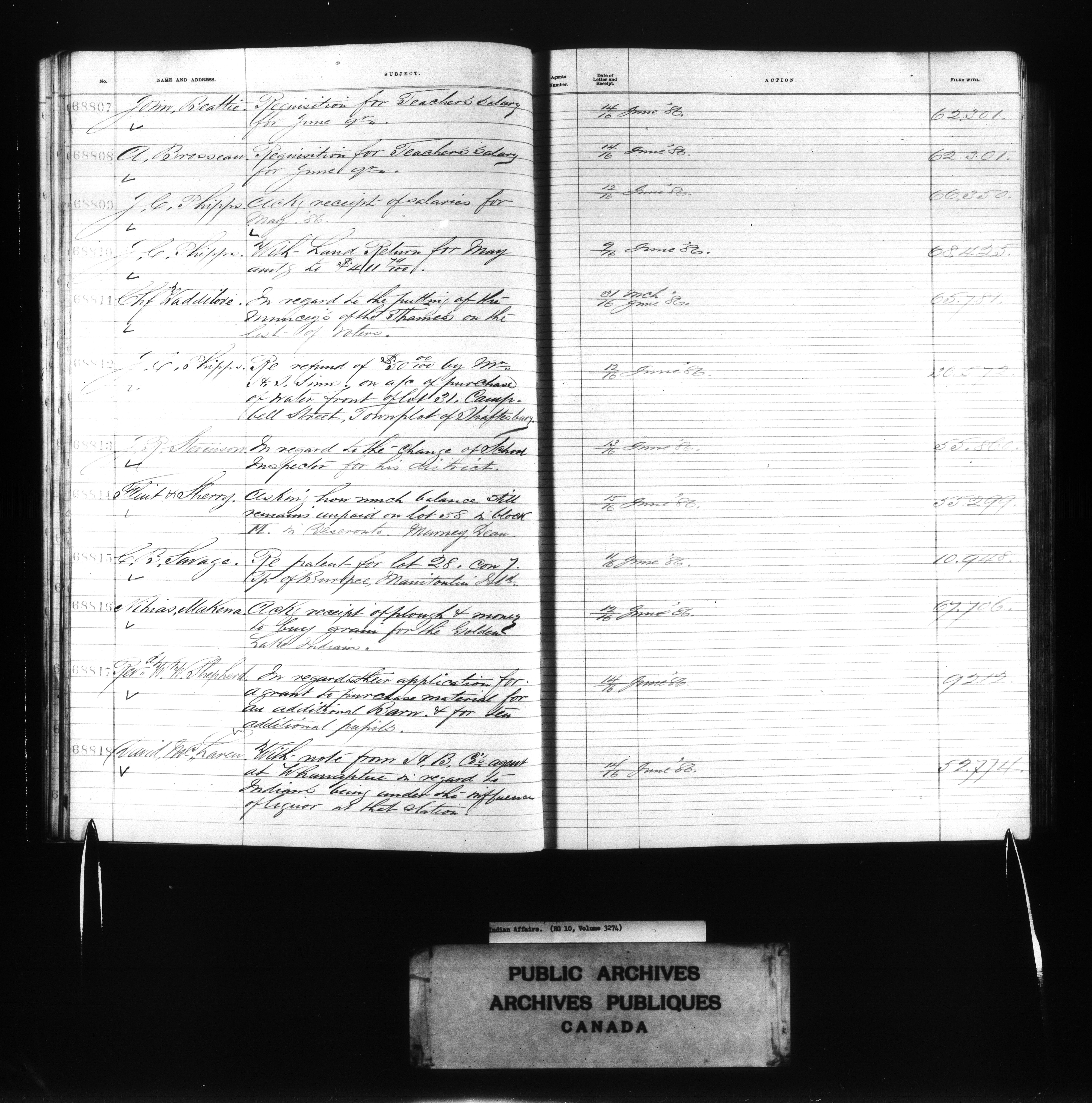 Department of Indian Affairs, Headquarters central registry system :registers, indices and indexed registers : C-10720