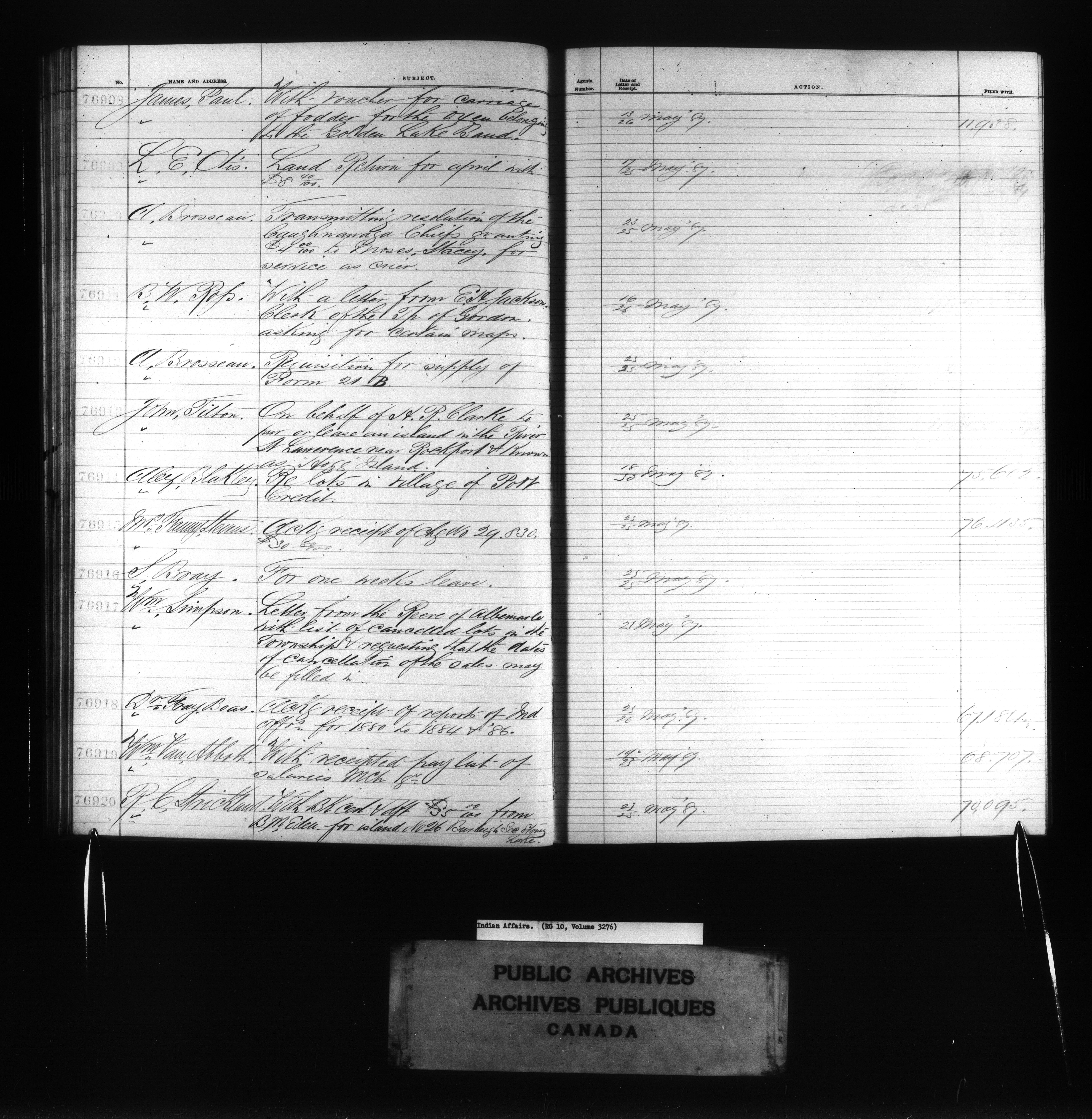 Department of Indian Affairs, Headquarters central registry system :registers, indices and indexed registers : C-10721