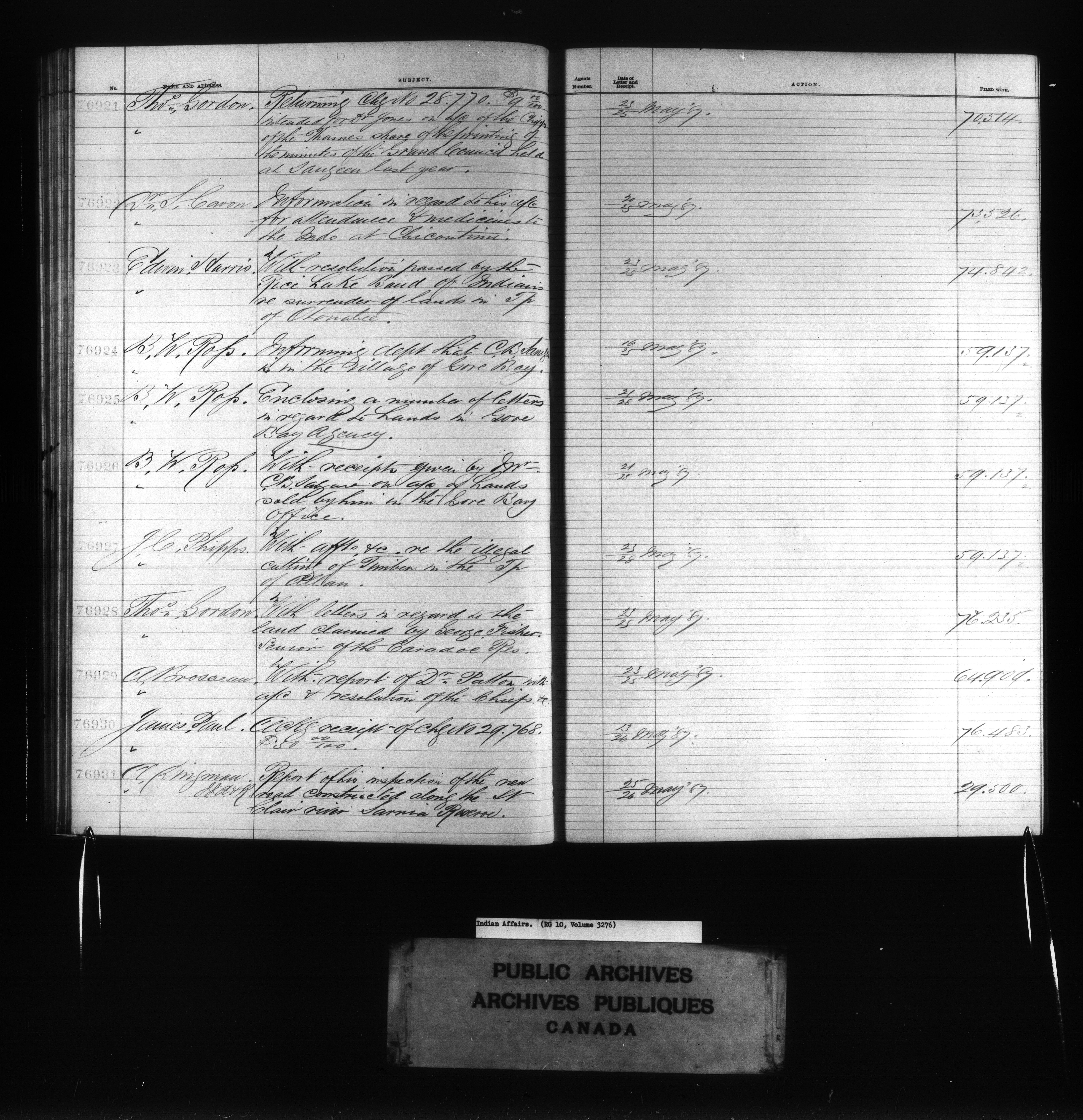 Department of Indian Affairs, Headquarters central registry system :registers, indices and indexed registers : C-10721
