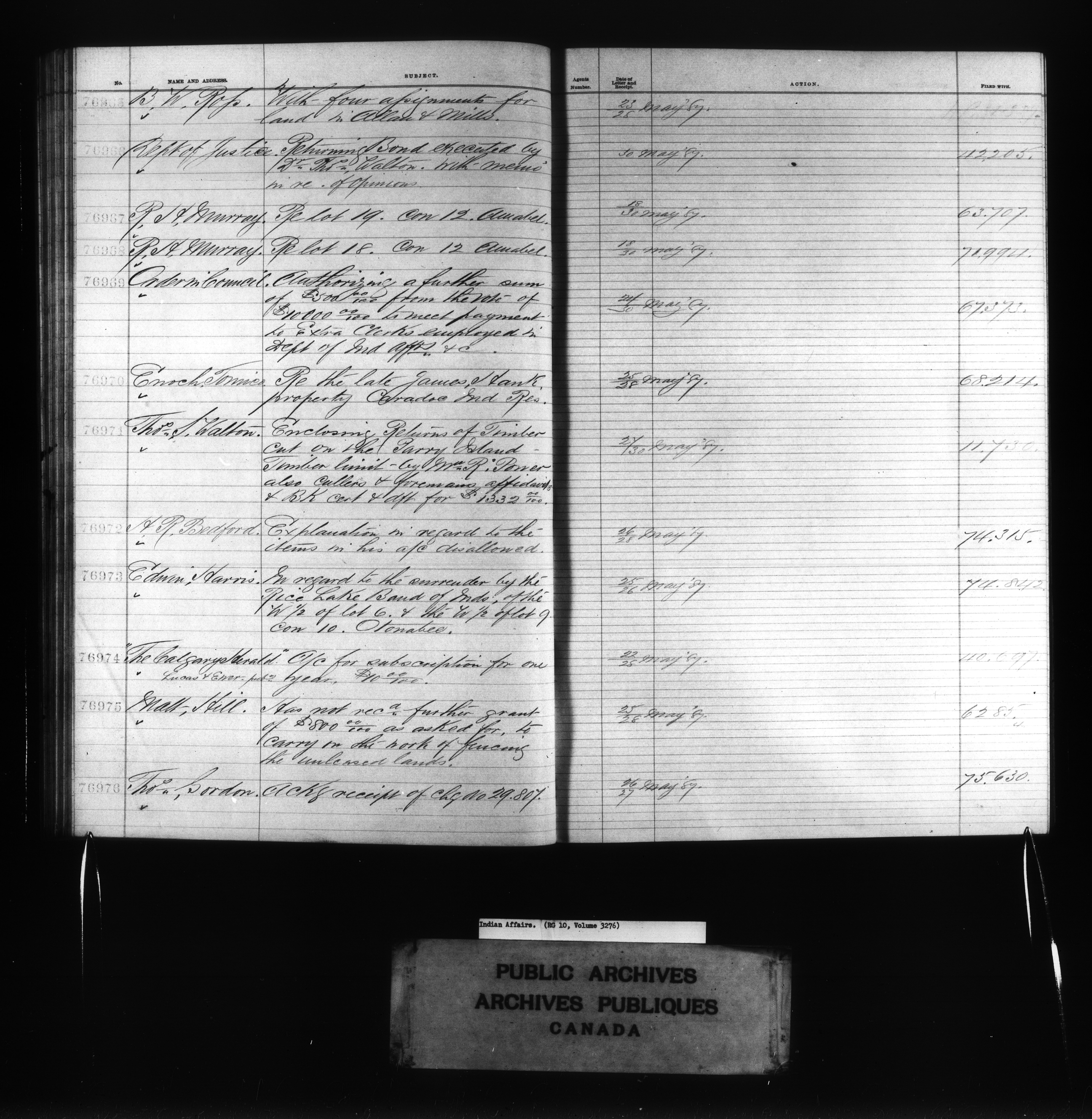 Department of Indian Affairs, Headquarters central registry system :registers, indices and indexed registers : C-10721
