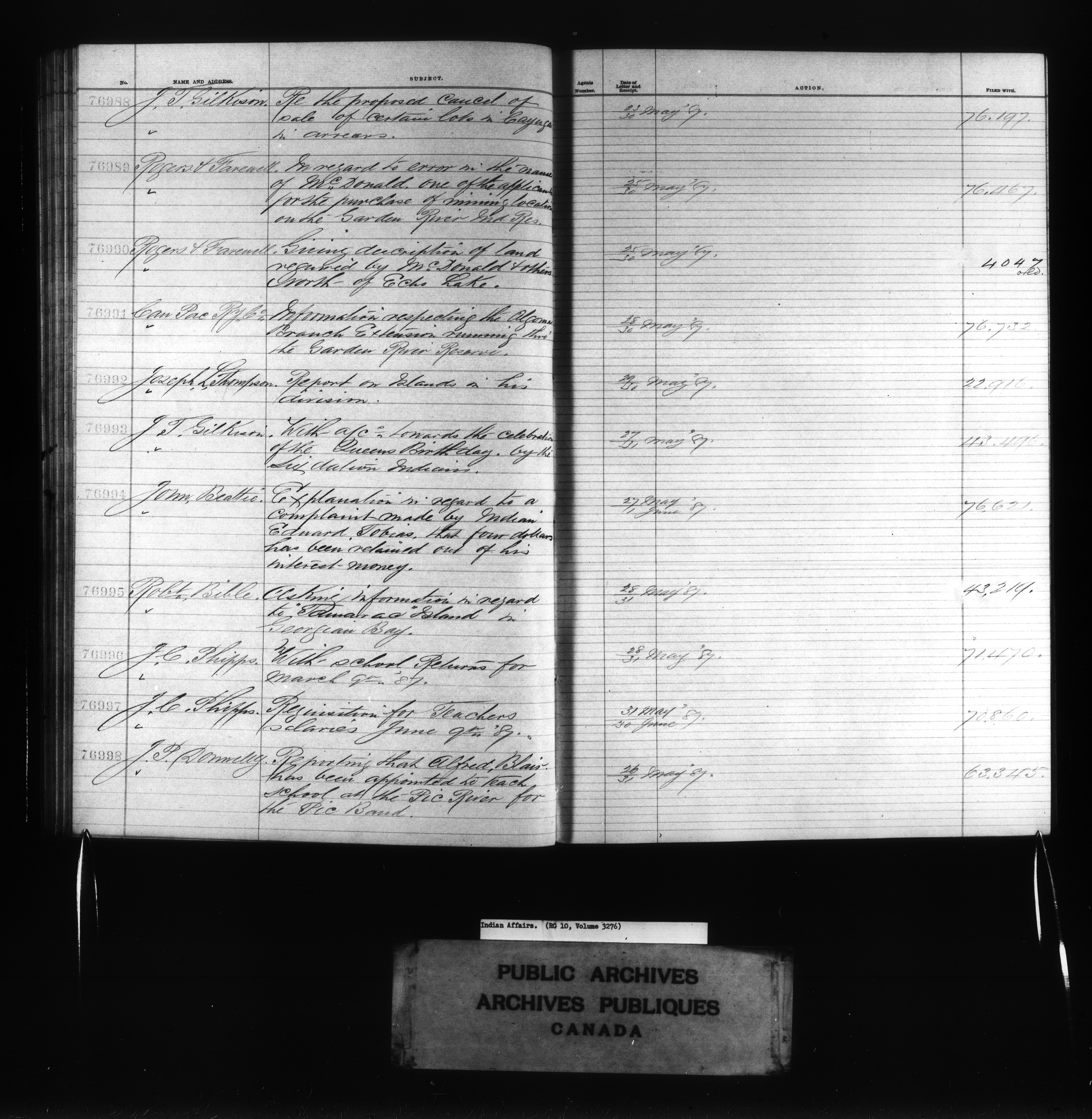 Department of Indian Affairs : Red Series register for Ontario and Quebec - 10721