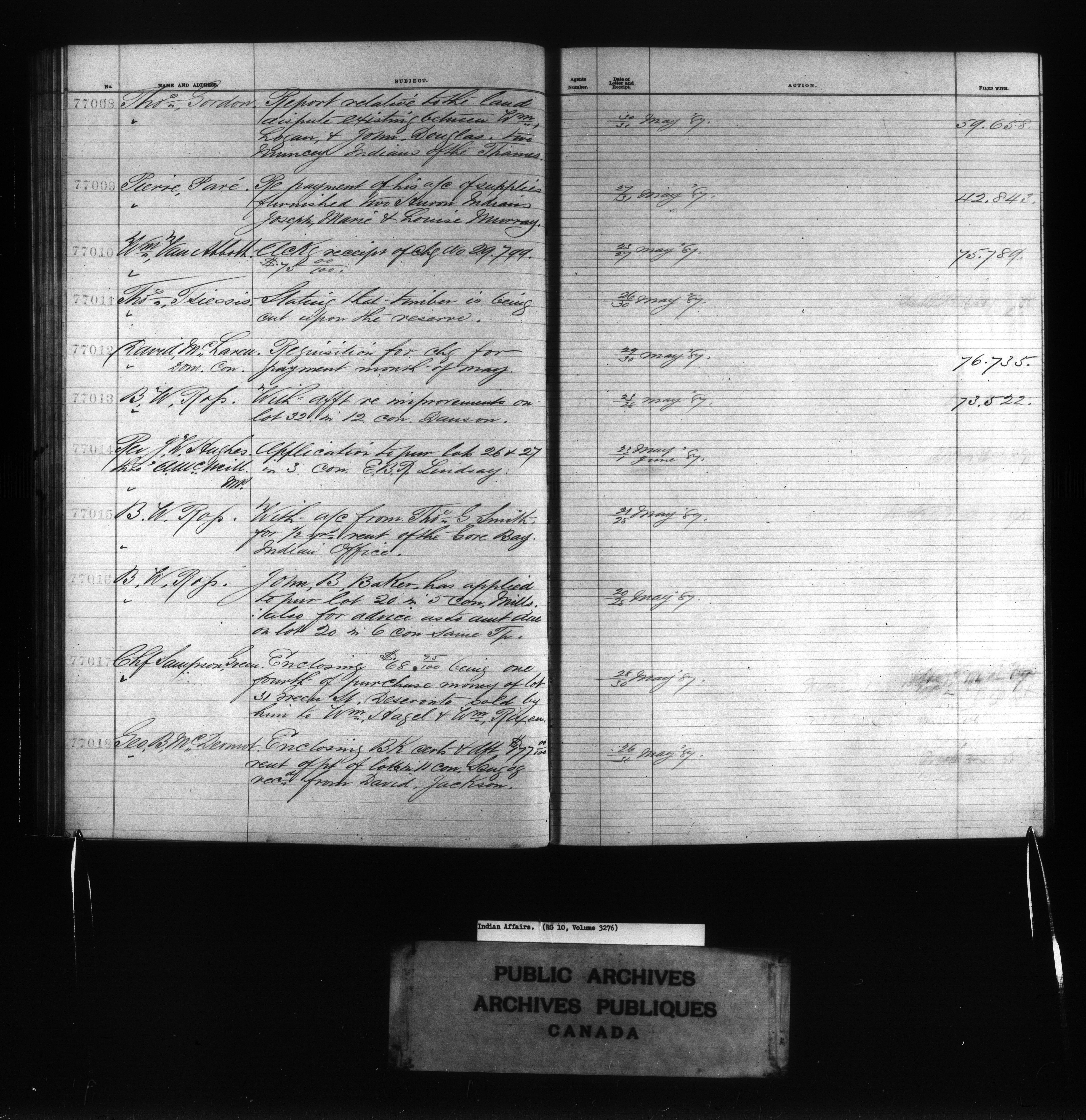 Department of Indian Affairs : Red Series register for Ontario and Quebec - 10721
