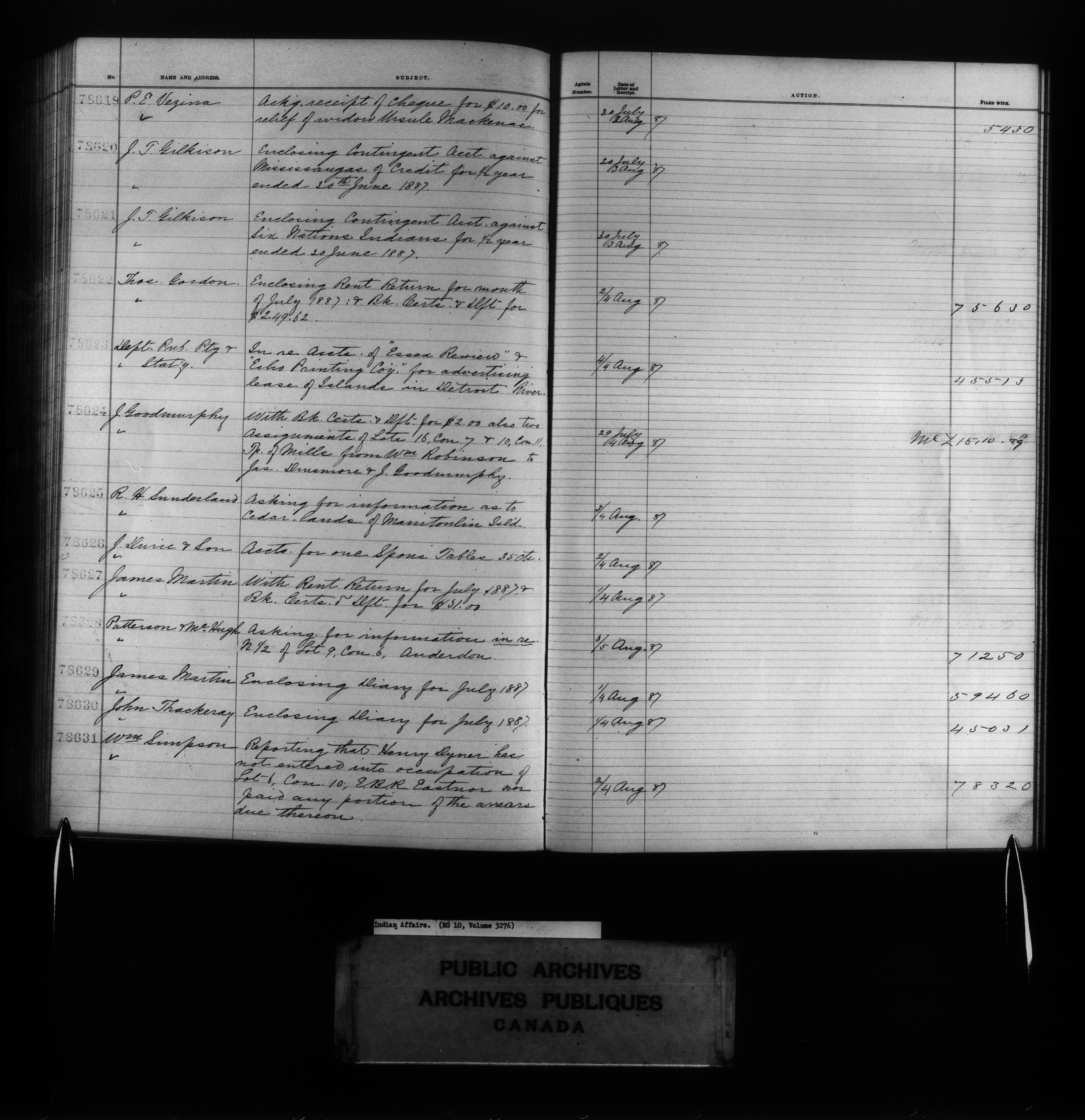 Department of Indian Affairs : Red Series register for Ontario and Quebec - 10722