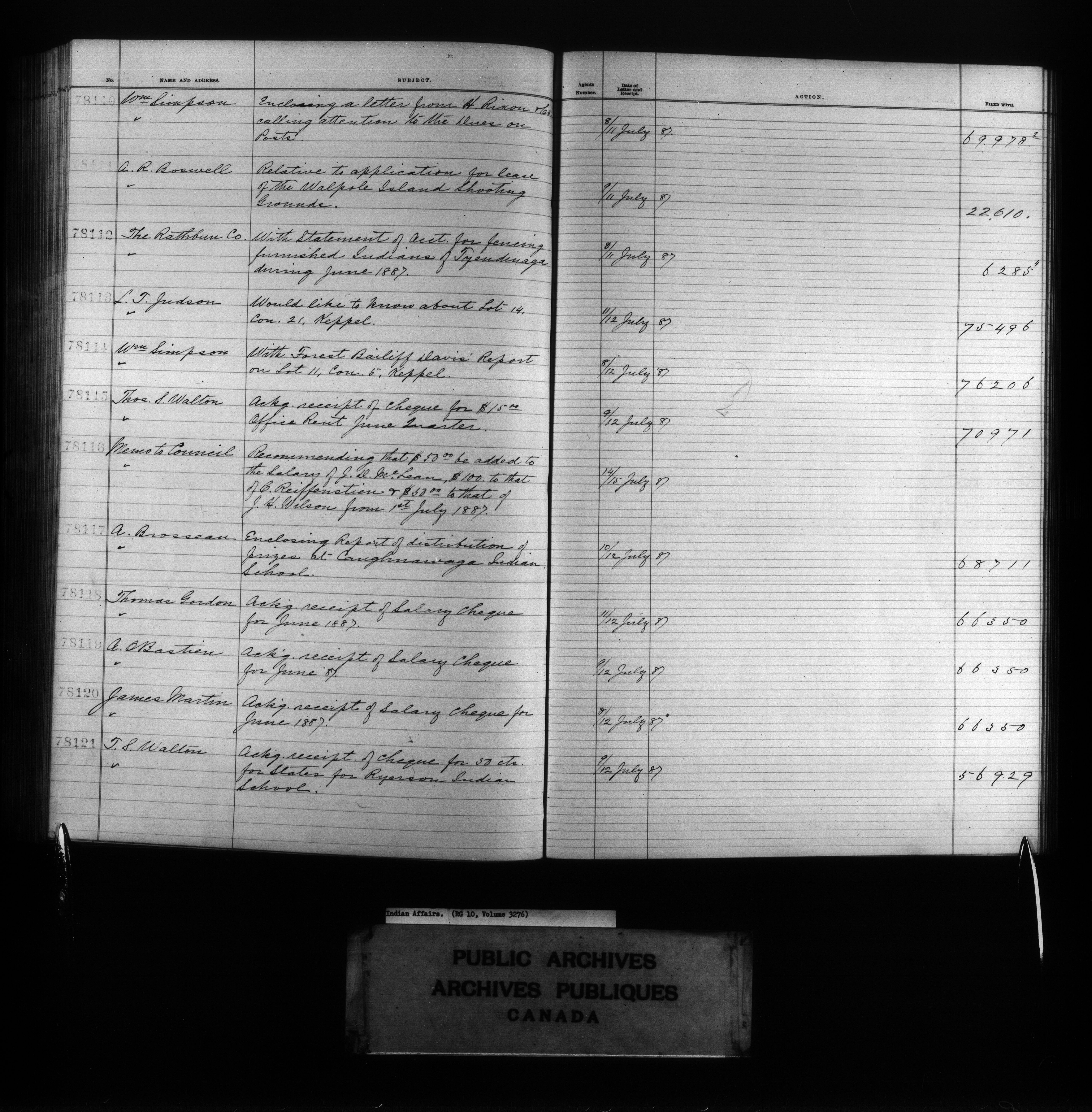 Department of Indian Affairs, Headquarters central registry system :registers, indices and indexed registers : C-10722