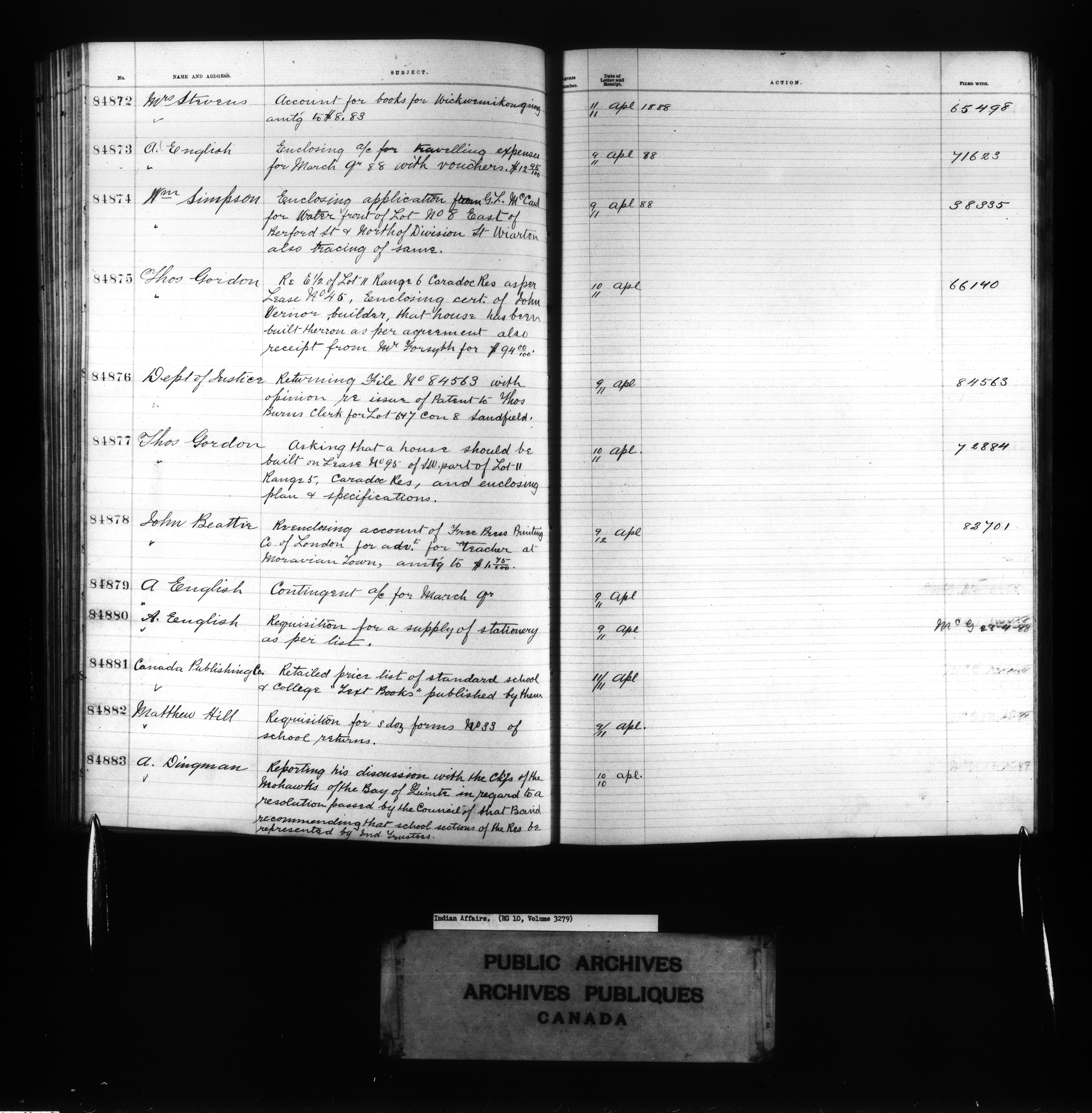 Department of Indian Affairs : Red Series register for Ontario and Quebec - 10722
