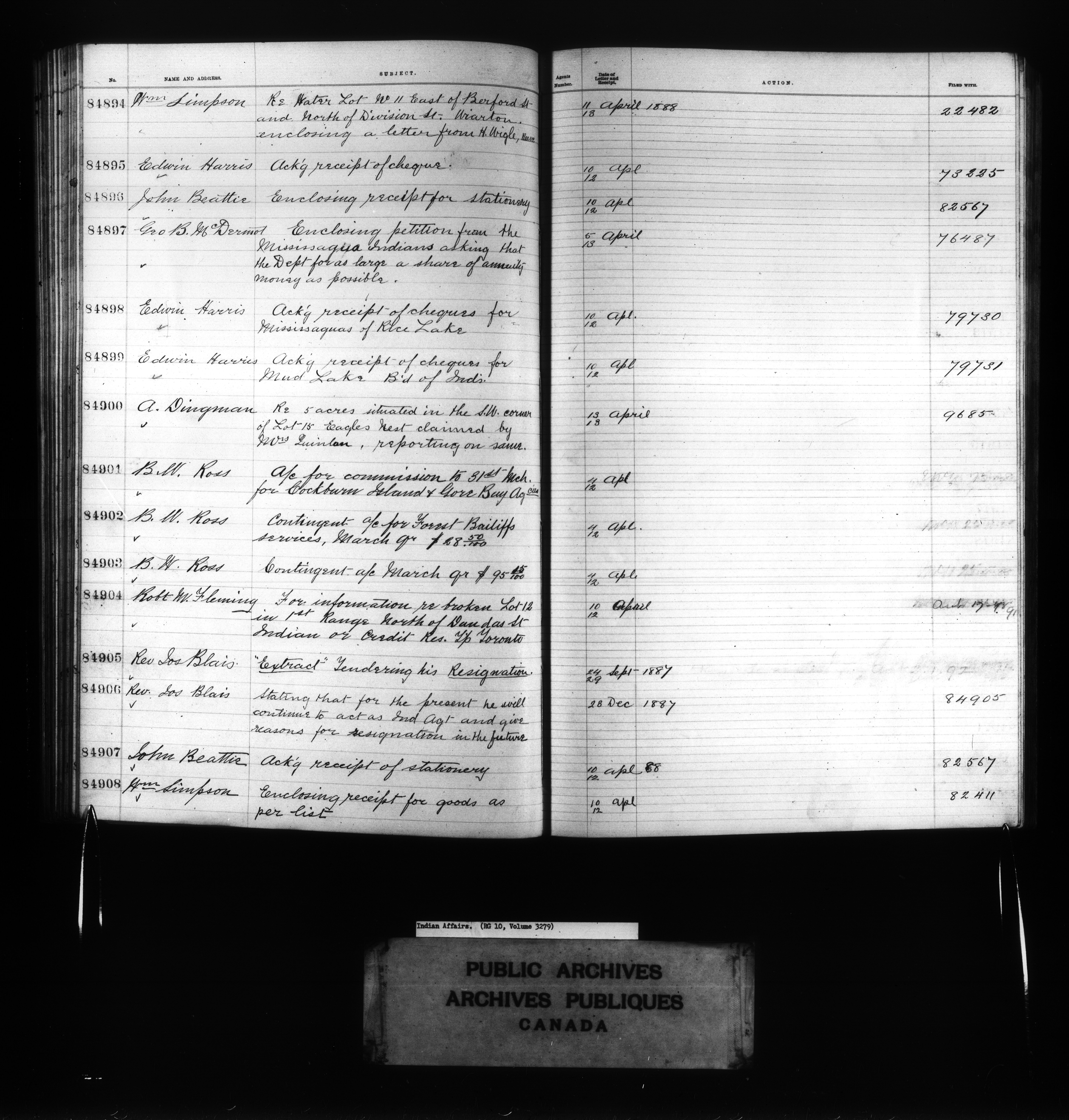 Department of Indian Affairs : Red Series register for Ontario and Quebec - 10722