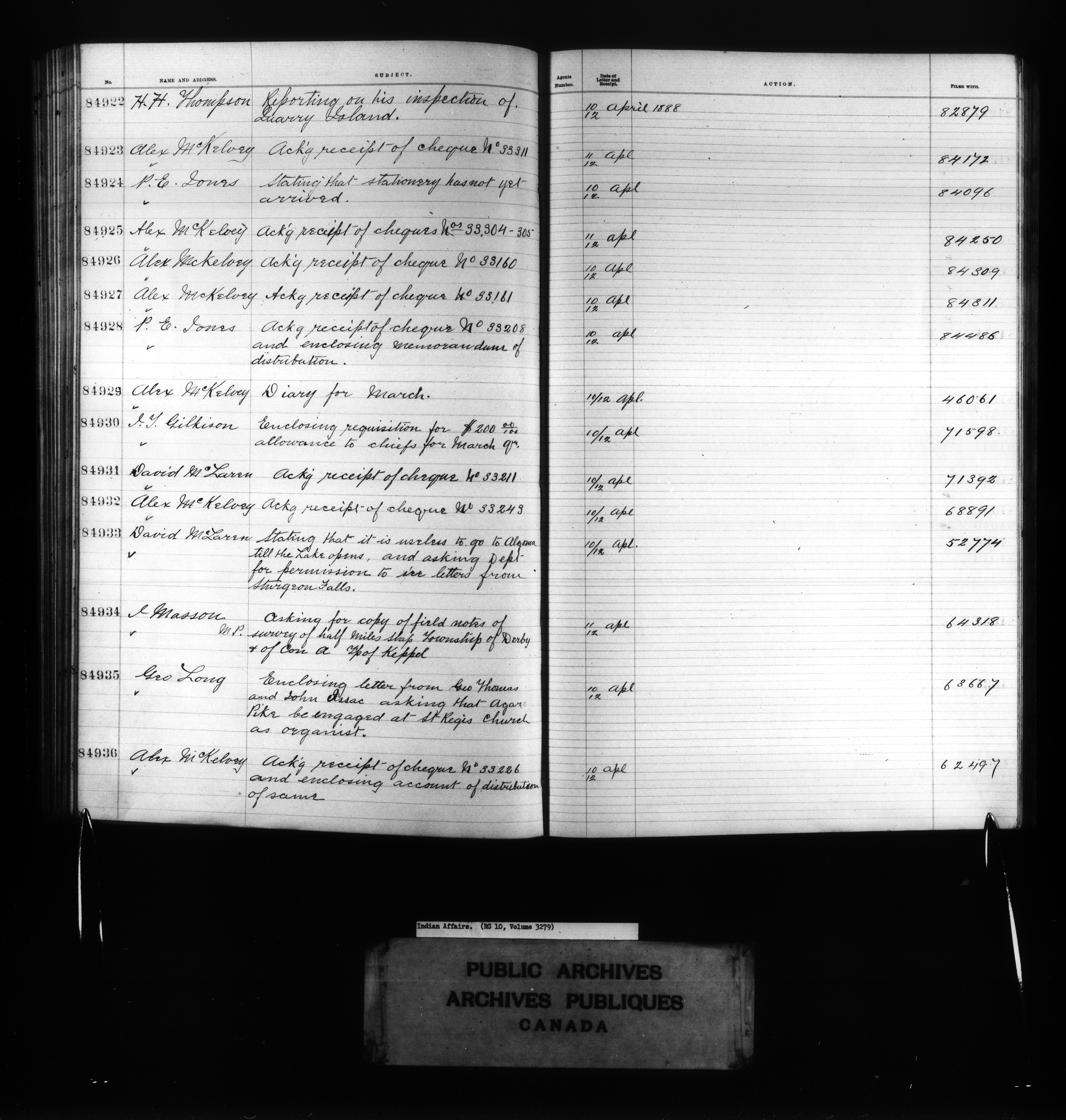 Department of Indian Affairs : Red Series register for Ontario and Quebec - 10722