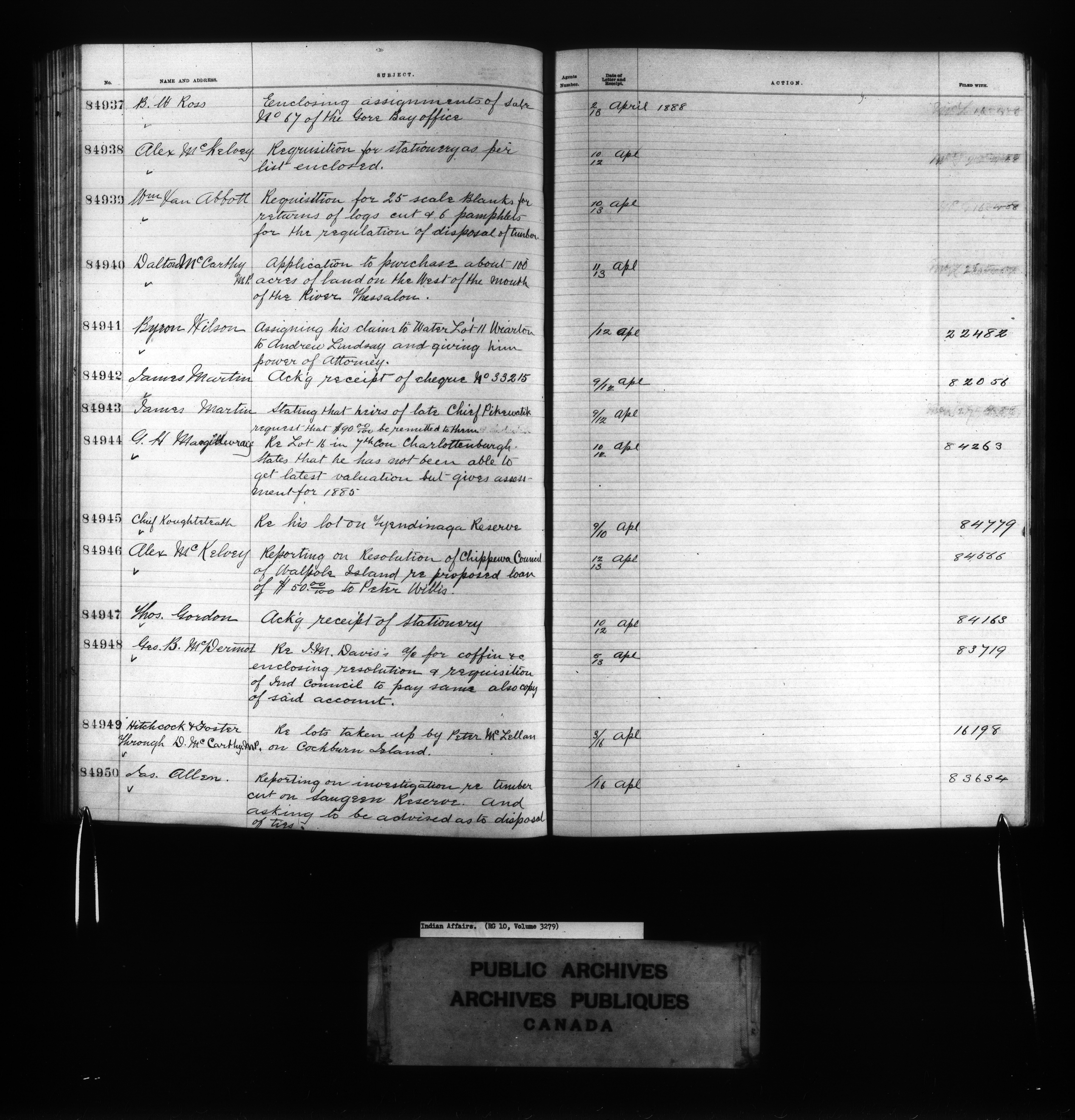 Department of Indian Affairs : Red Series register for Ontario and Quebec - 10722
