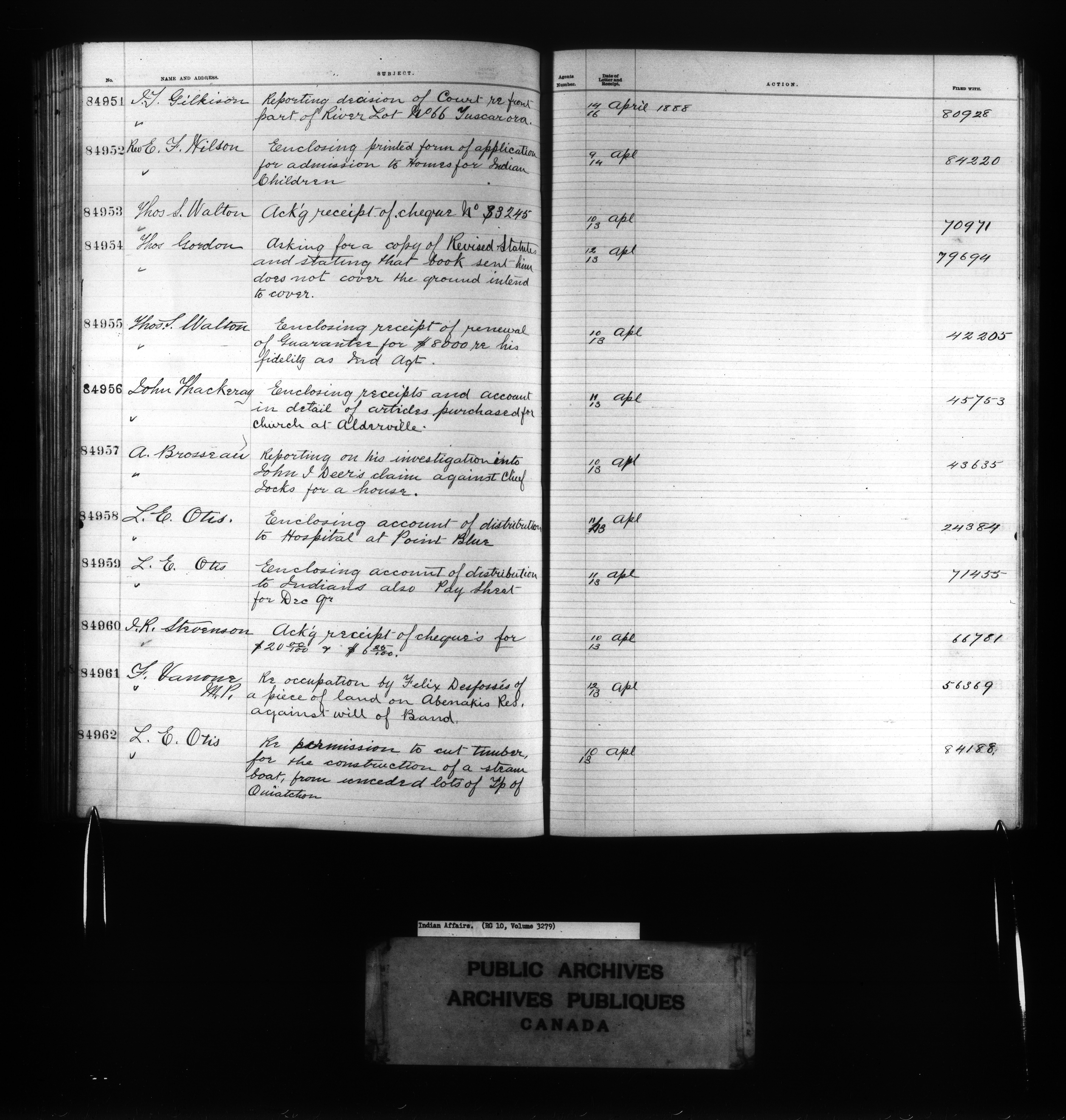 Department of Indian Affairs, Headquarters central registry system :registers, indices and indexed registers : C-10722