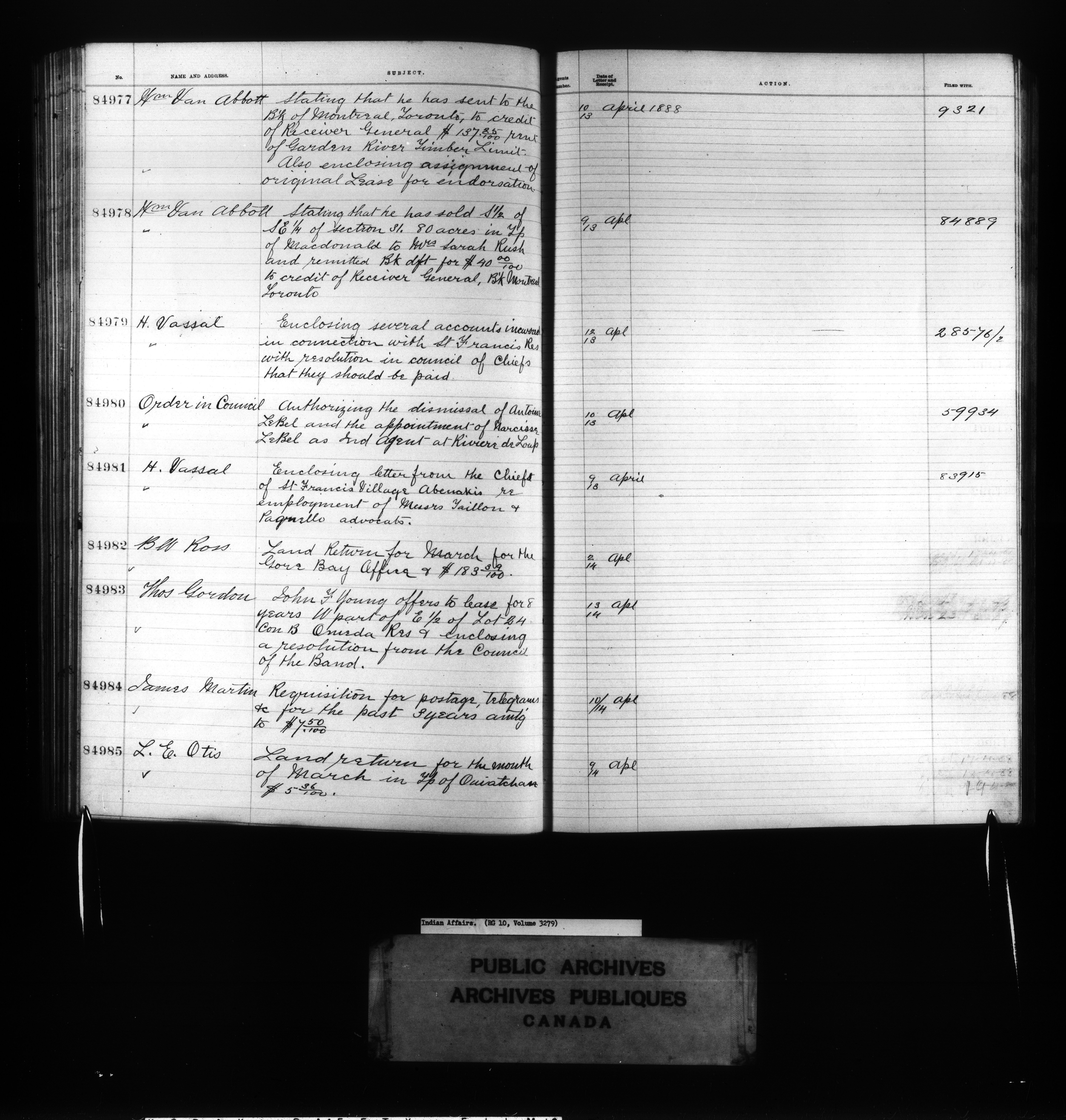 Department of Indian Affairs, Headquarters central registry system :registers, indices and indexed registers : C-10722