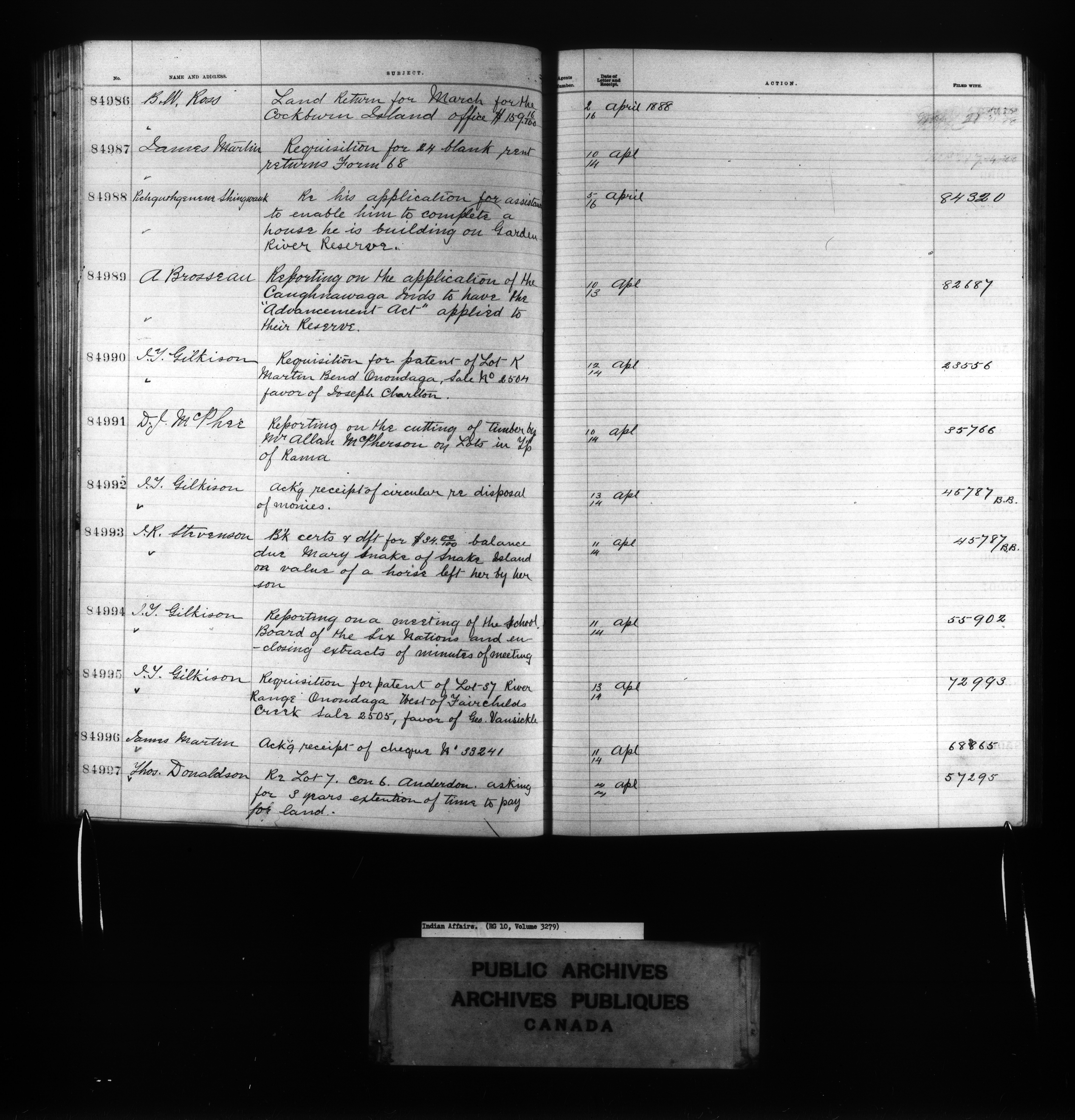 Department of Indian Affairs, Headquarters central registry system :registers, indices and indexed registers : C-10722