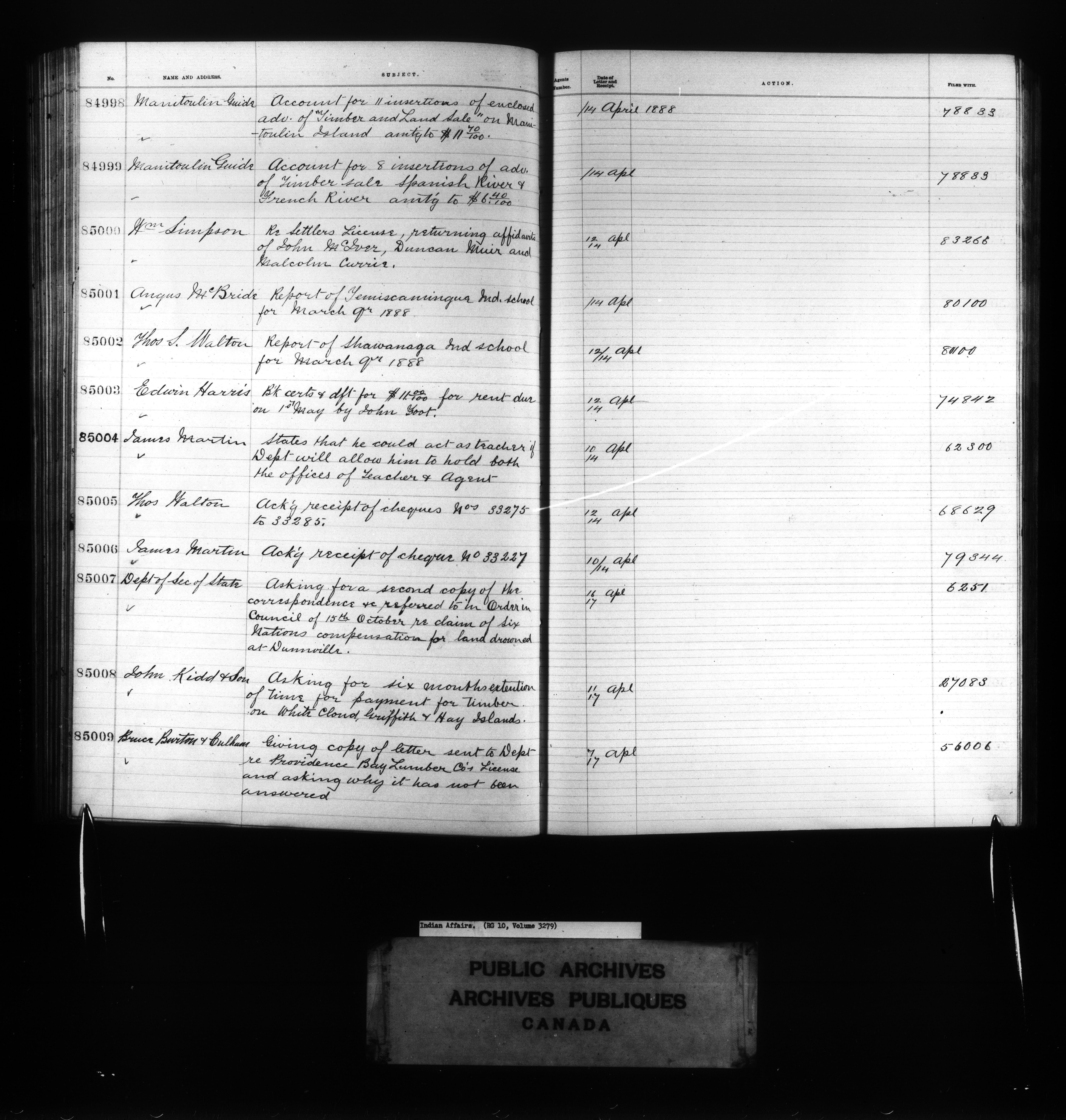 Department of Indian Affairs, Headquarters central registry system :registers, indices and indexed registers : C-10722