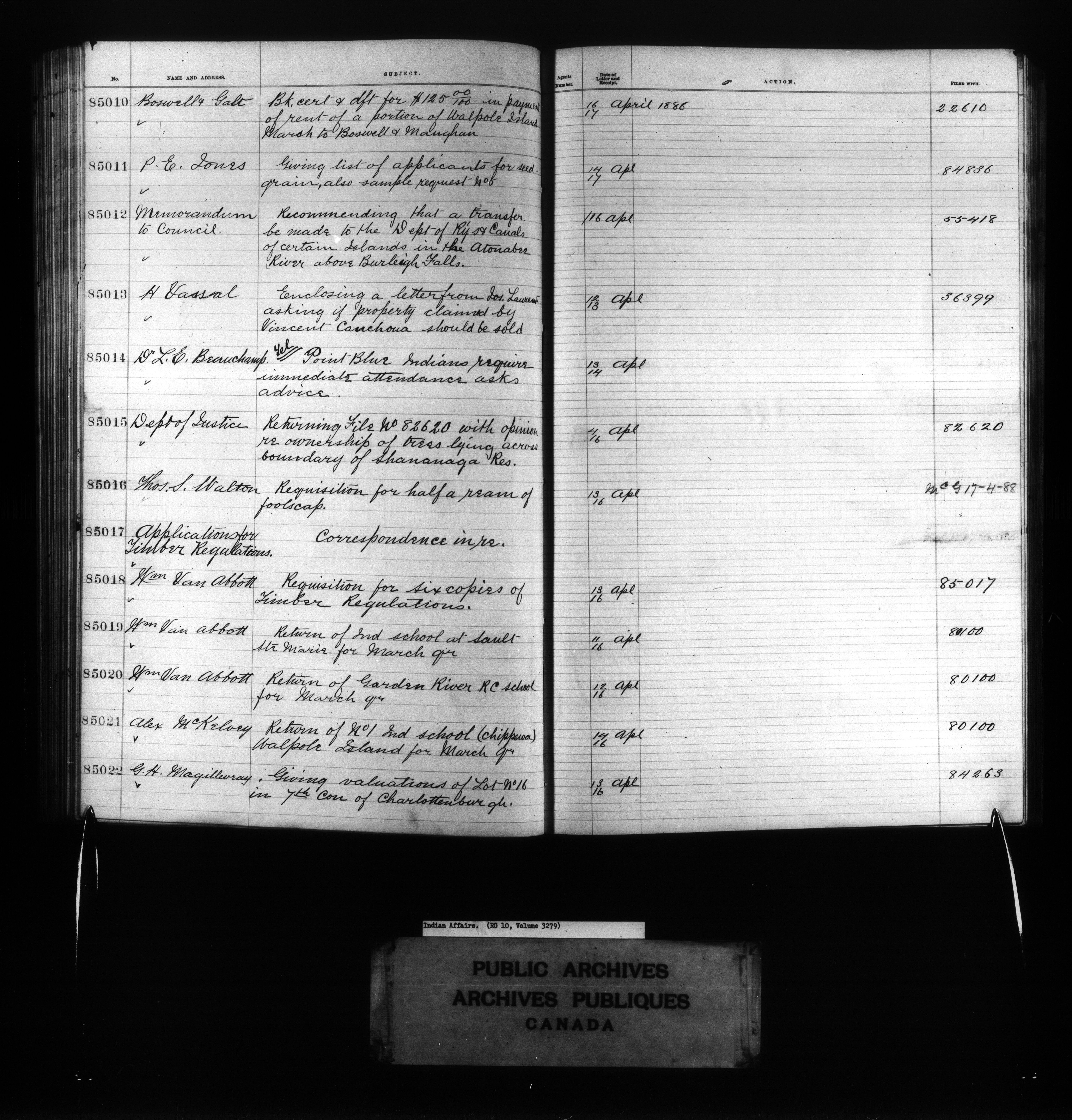 Department of Indian Affairs : Red Series register for Ontario and Quebec - 10722