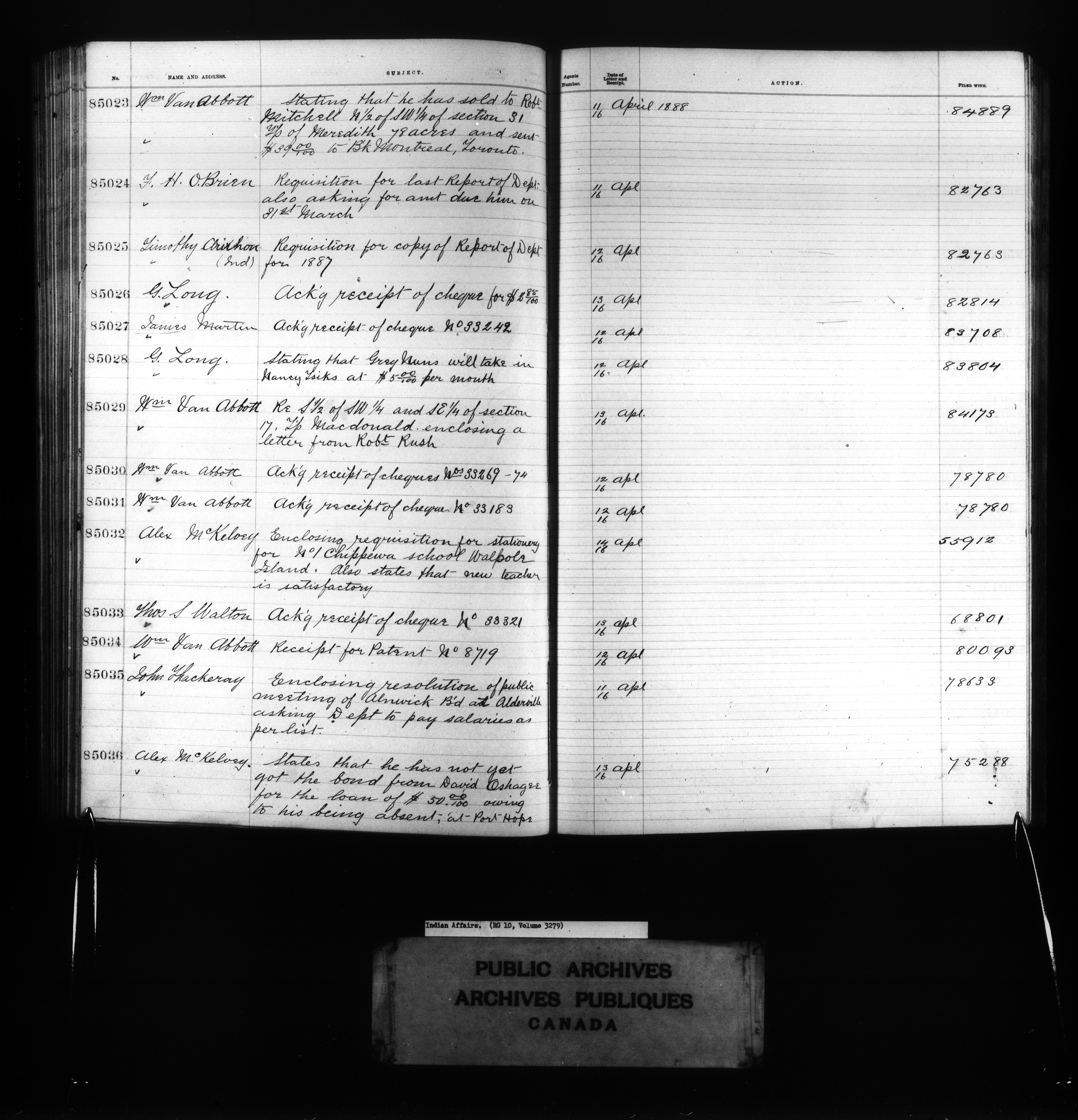 Department of Indian Affairs : Red Series register for Ontario and Quebec - 10722