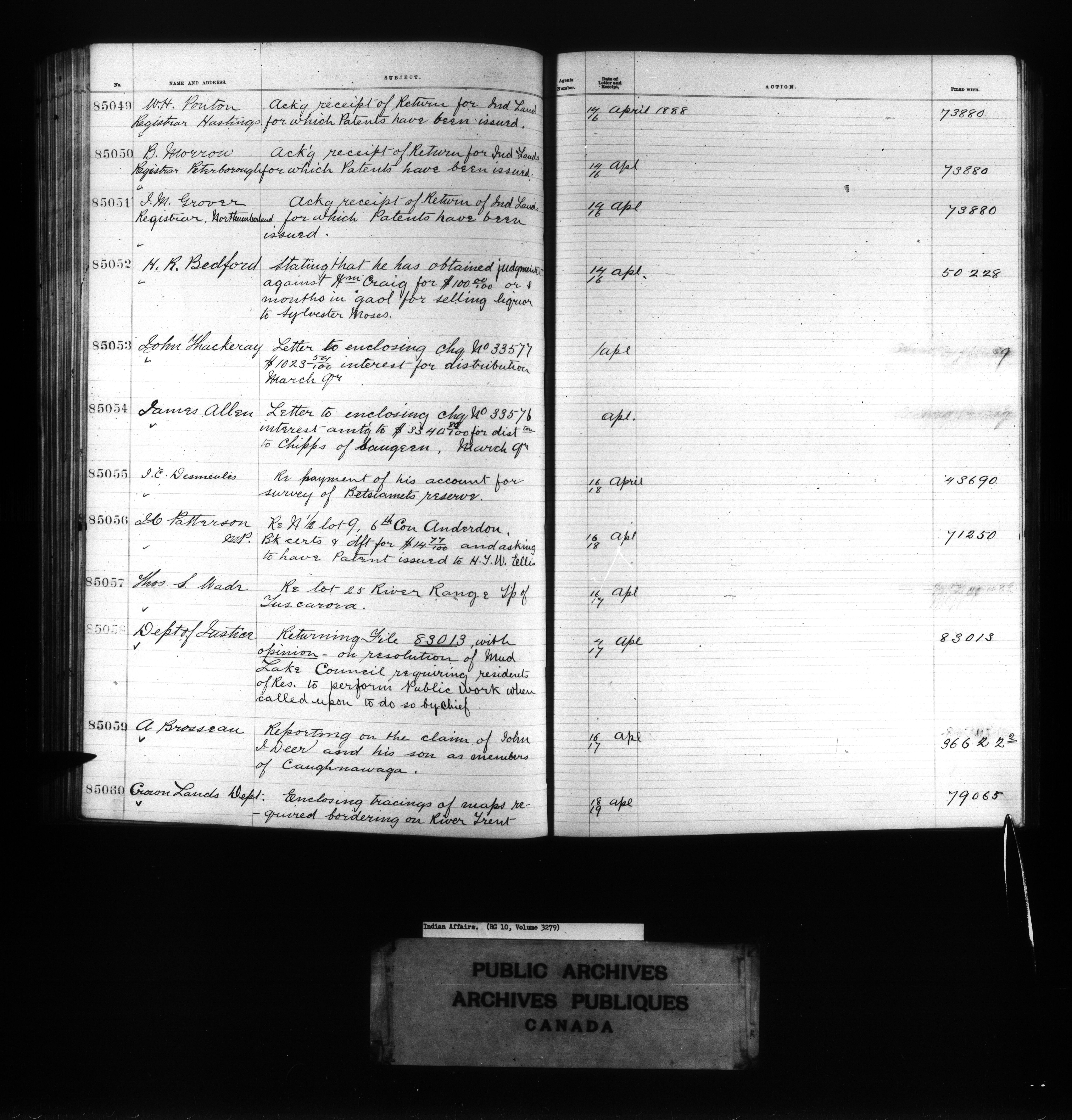 Department of Indian Affairs : Red Series register for Ontario and Quebec - 10722