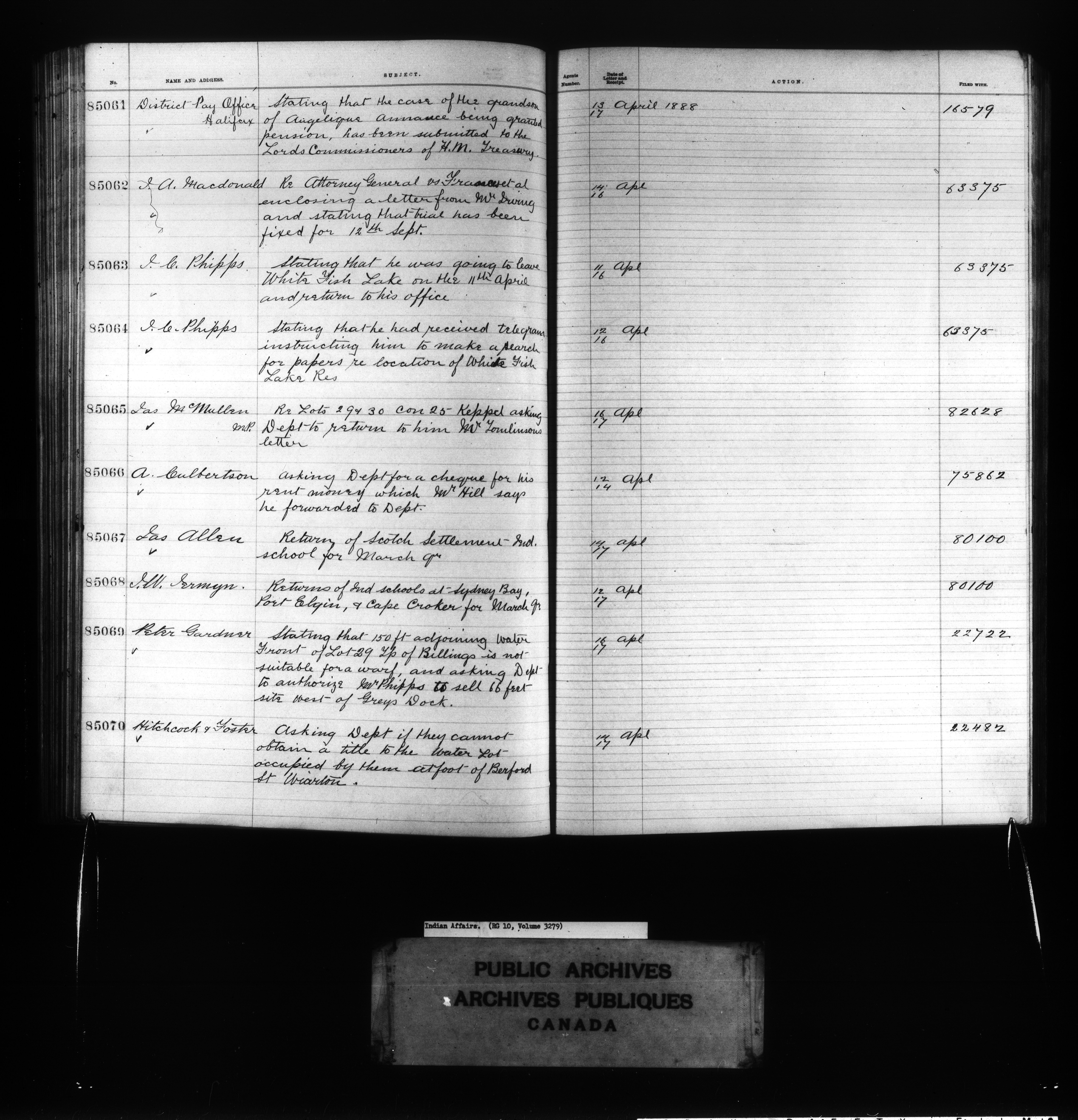 Department of Indian Affairs : Red Series register for Ontario and Quebec - 10722