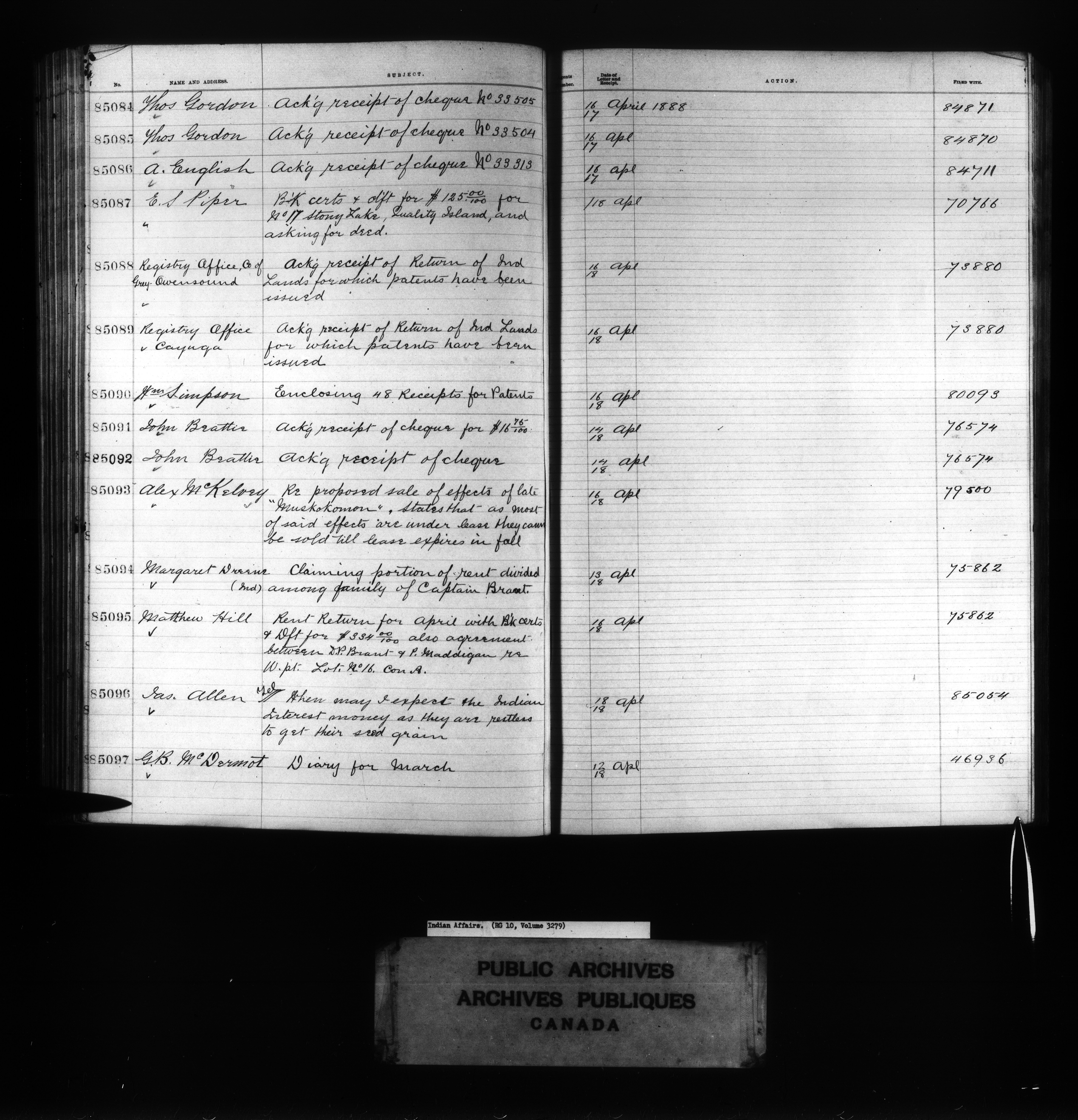 Department of Indian Affairs, Headquarters central registry system :registers, indices and indexed registers : C-10722