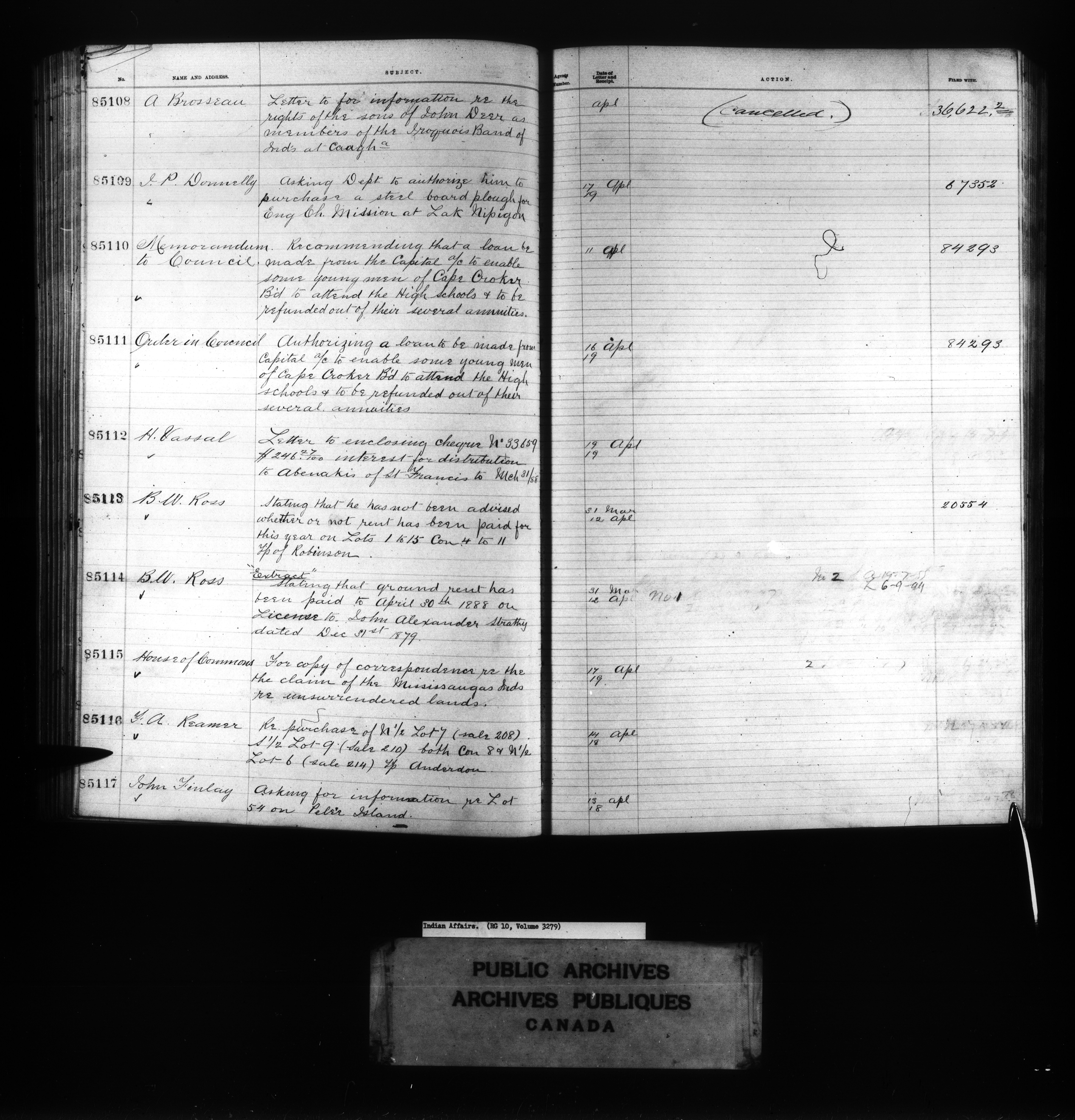 Department of Indian Affairs : Red Series register for Ontario and Quebec - 10722