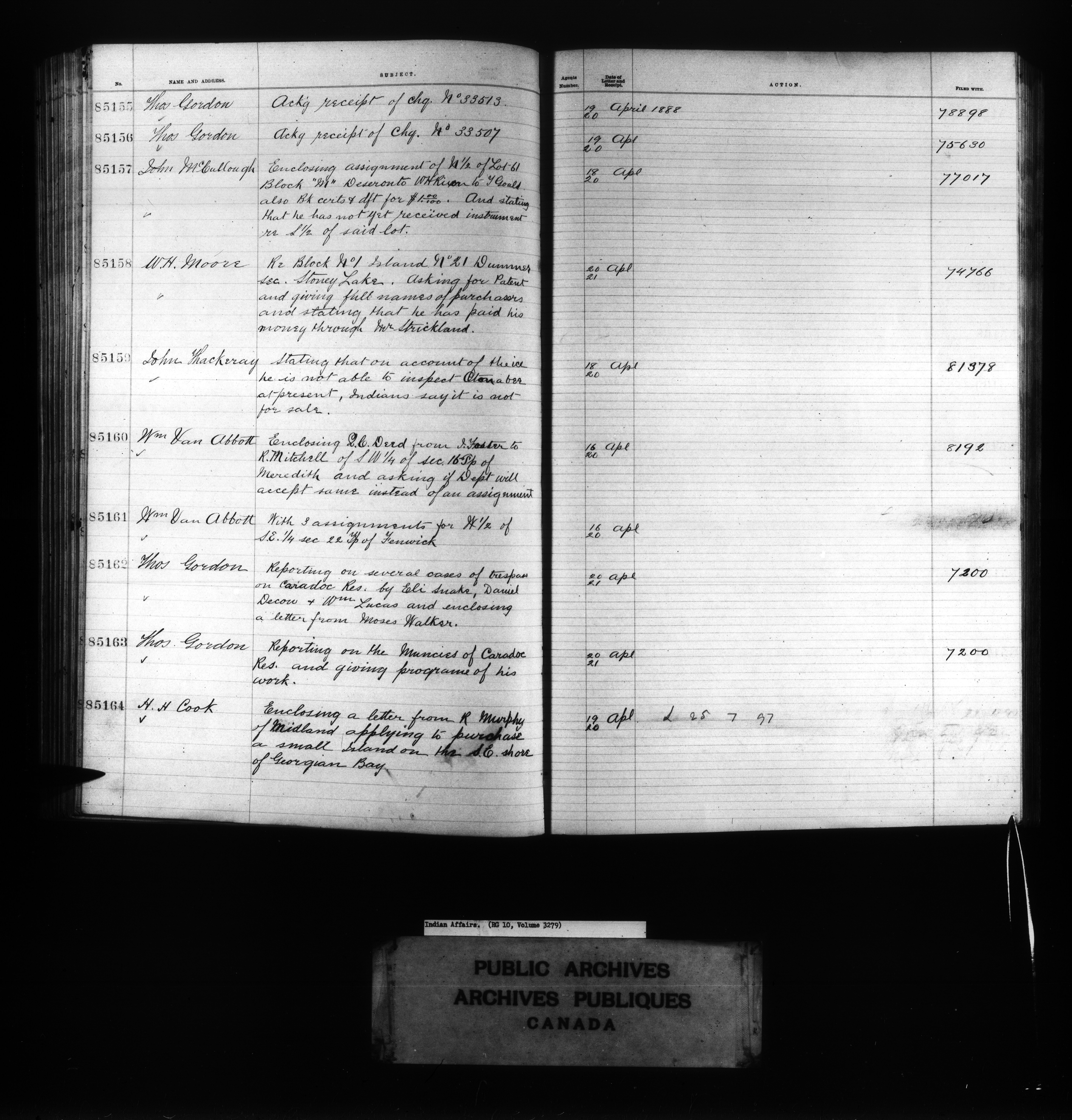 Department of Indian Affairs, Headquarters central registry system :registers, indices and indexed registers : C-10722
