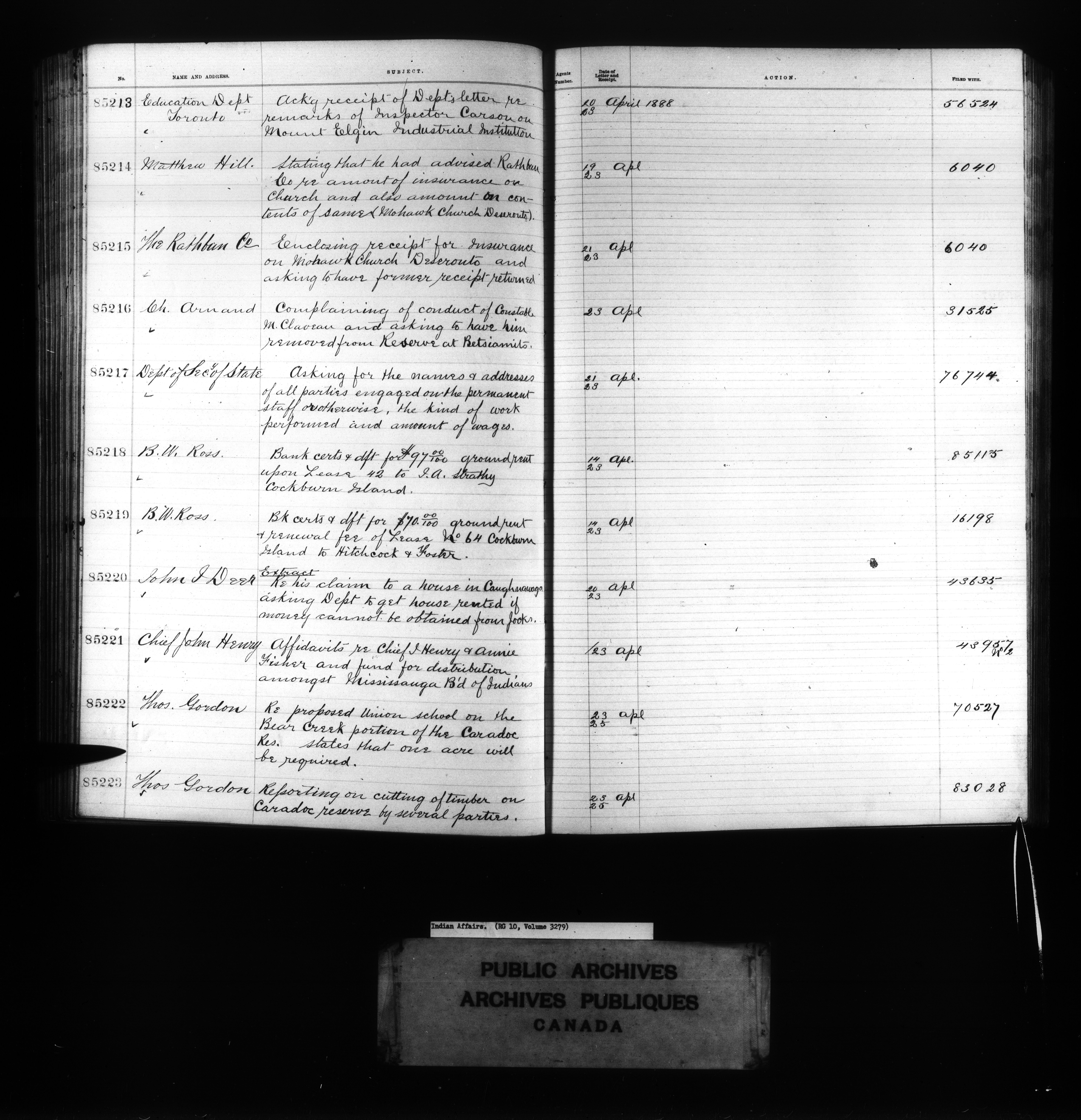 Department of Indian Affairs, Headquarters central registry system :registers, indices and indexed registers : C-10722