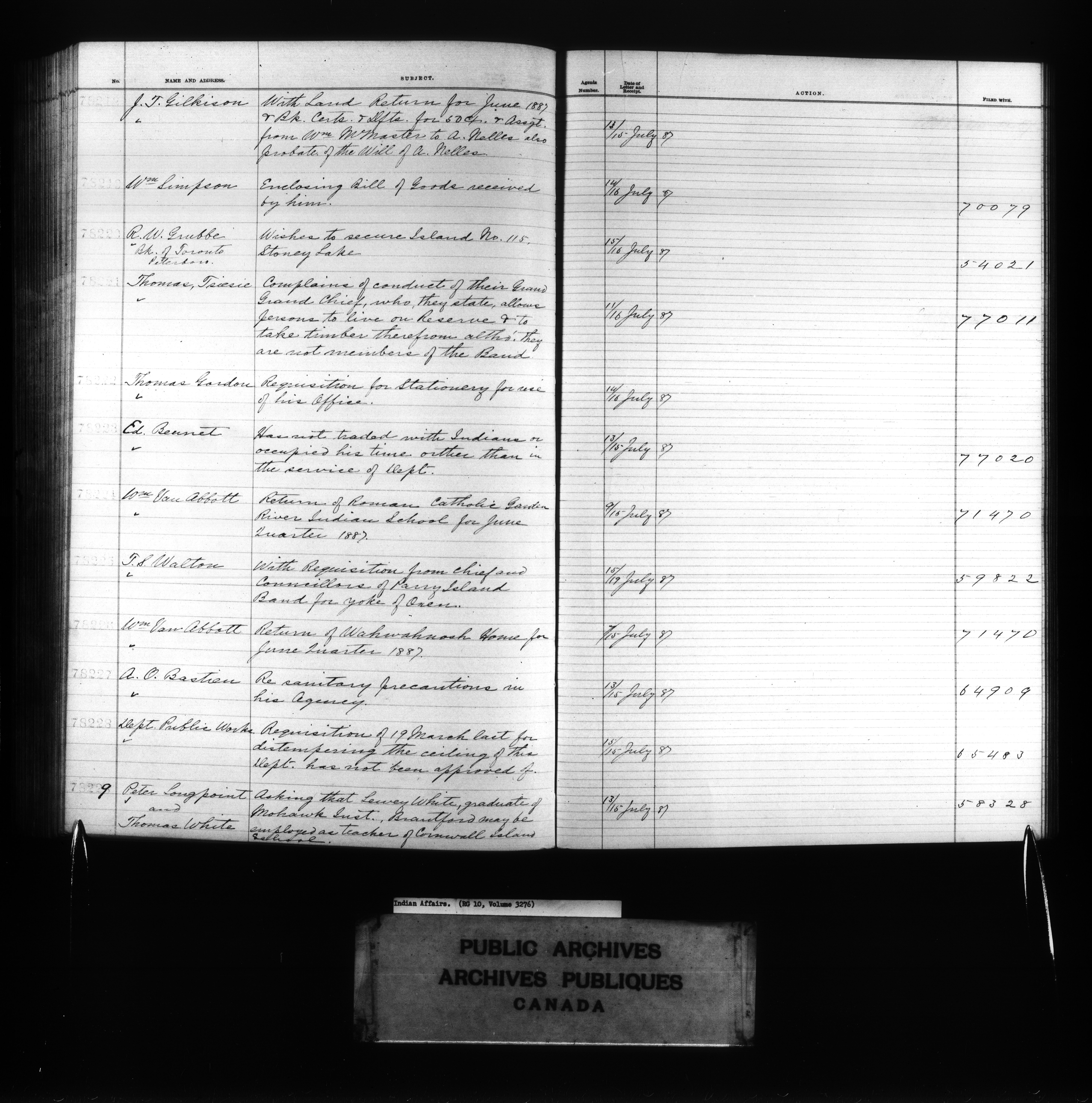 Department of Indian Affairs : Red Series register for Ontario and Quebec - 10722