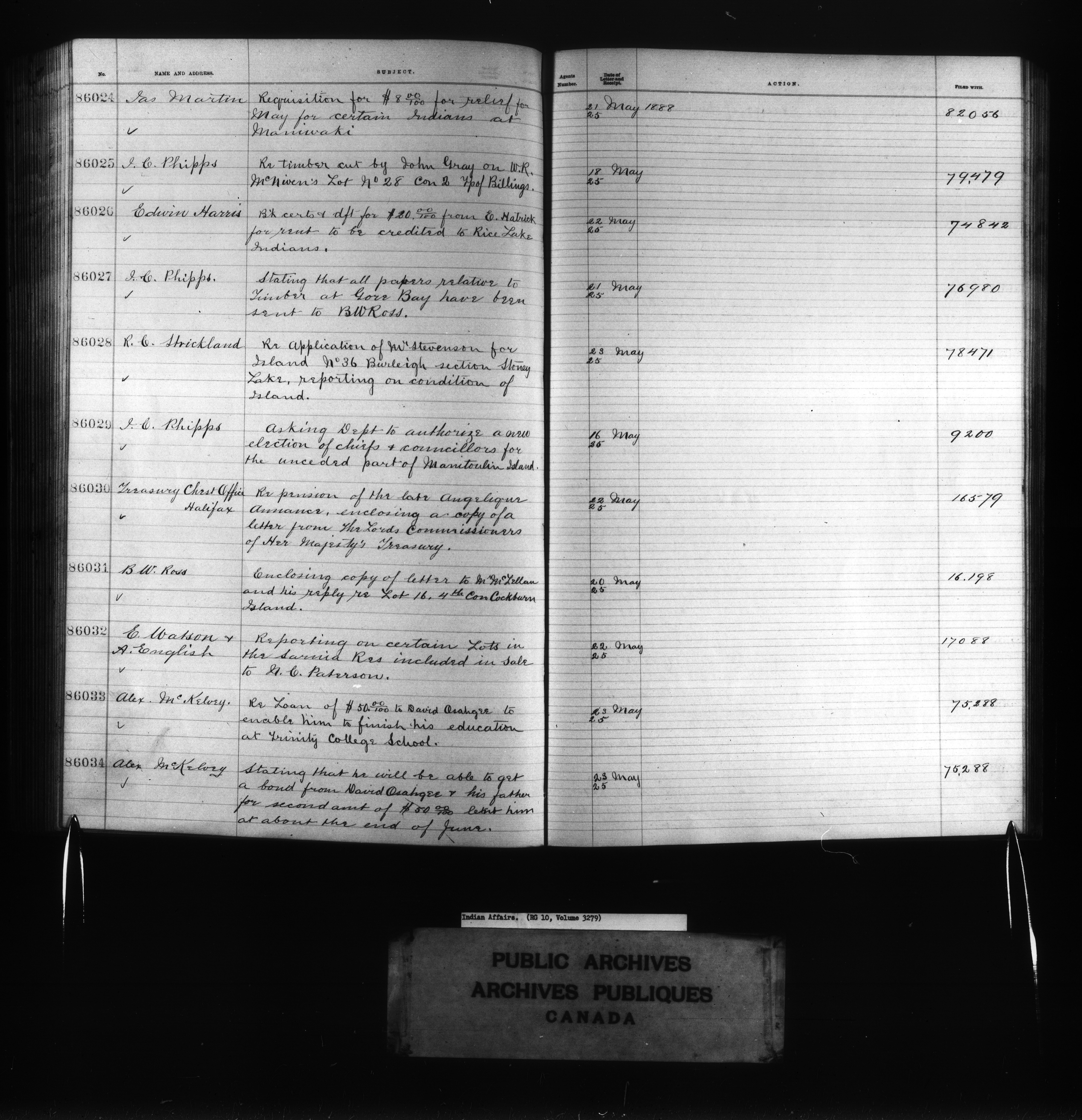 Department of Indian Affairs, Headquarters central registry system :registers, indices and indexed registers : C-10723