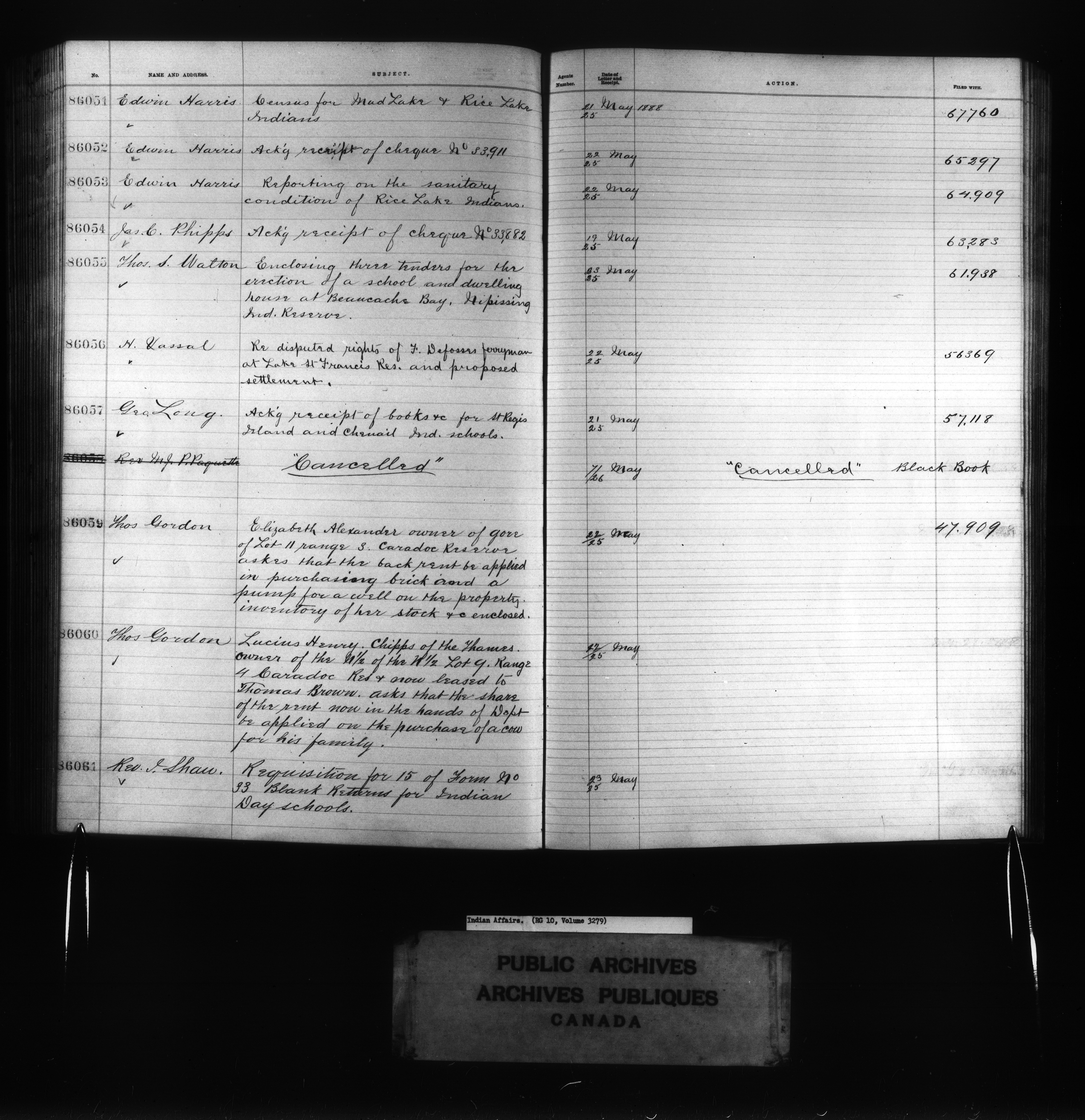 Department of Indian Affairs, Headquarters central registry system :registers, indices and indexed registers : C-10723