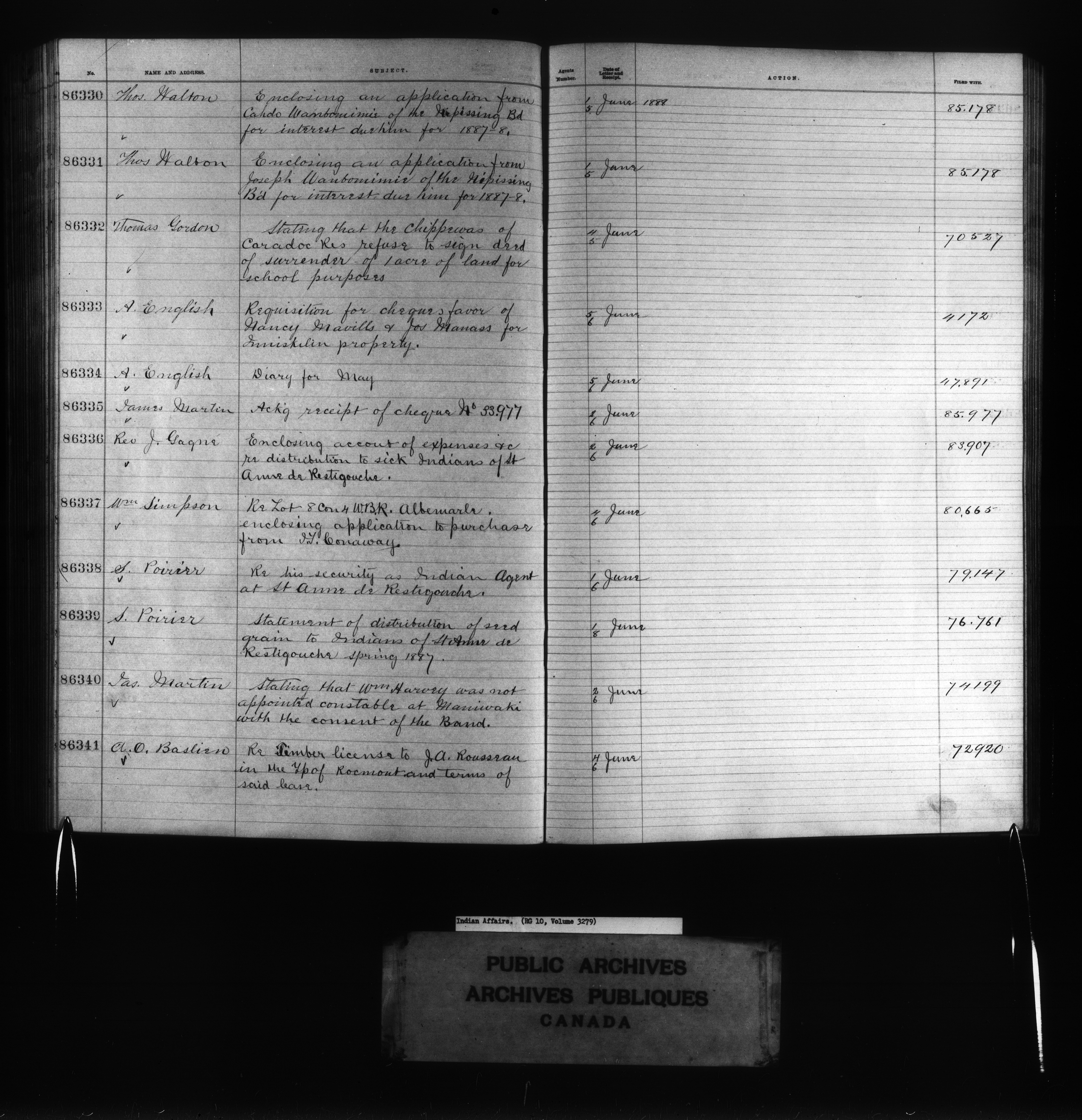 Department of Indian Affairs : Red Series register for Ontario and Quebec - 10723