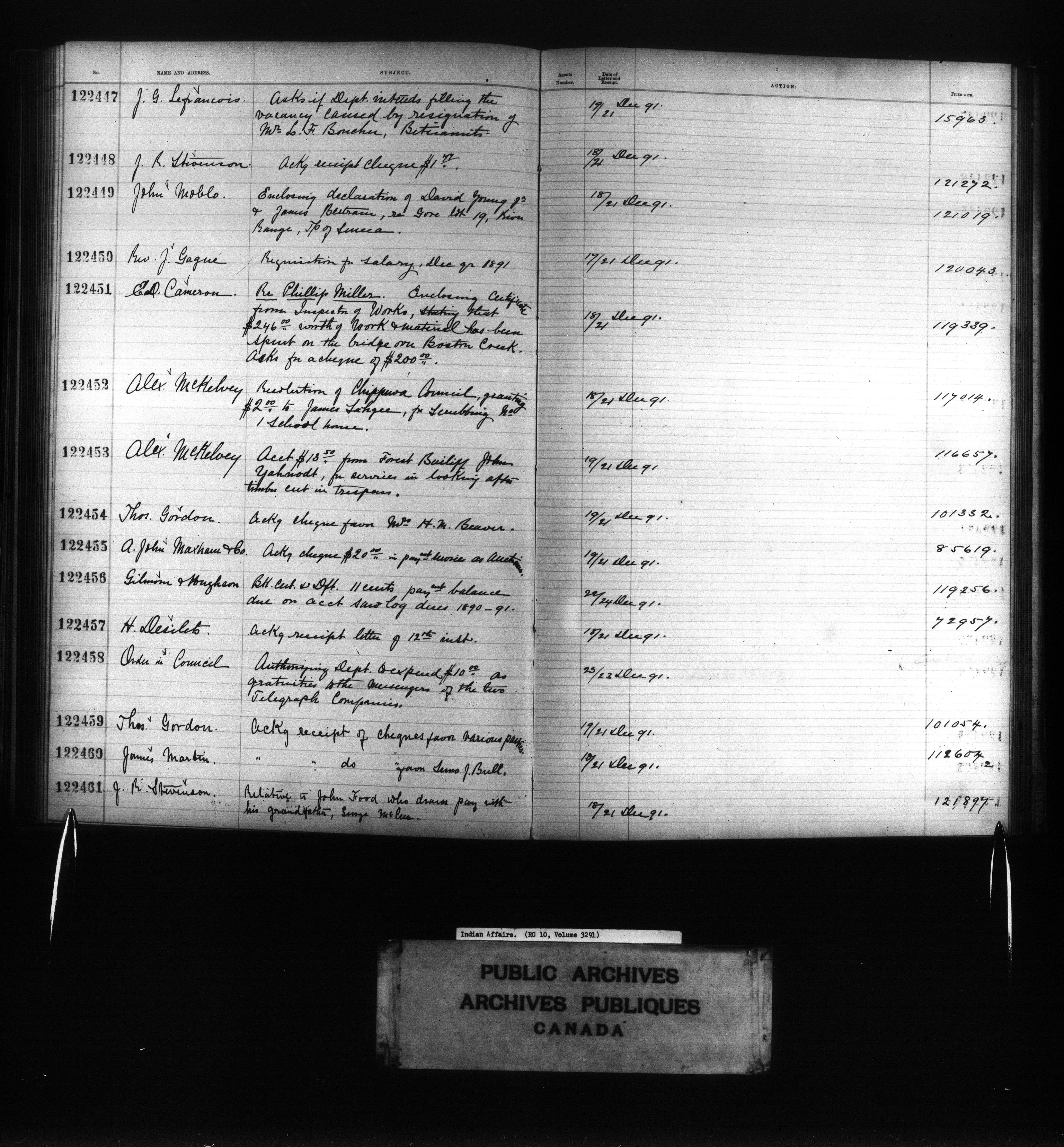Department of Indian Affairs, Headquarters central registry system :registers, indices and indexed registers : C-10727
