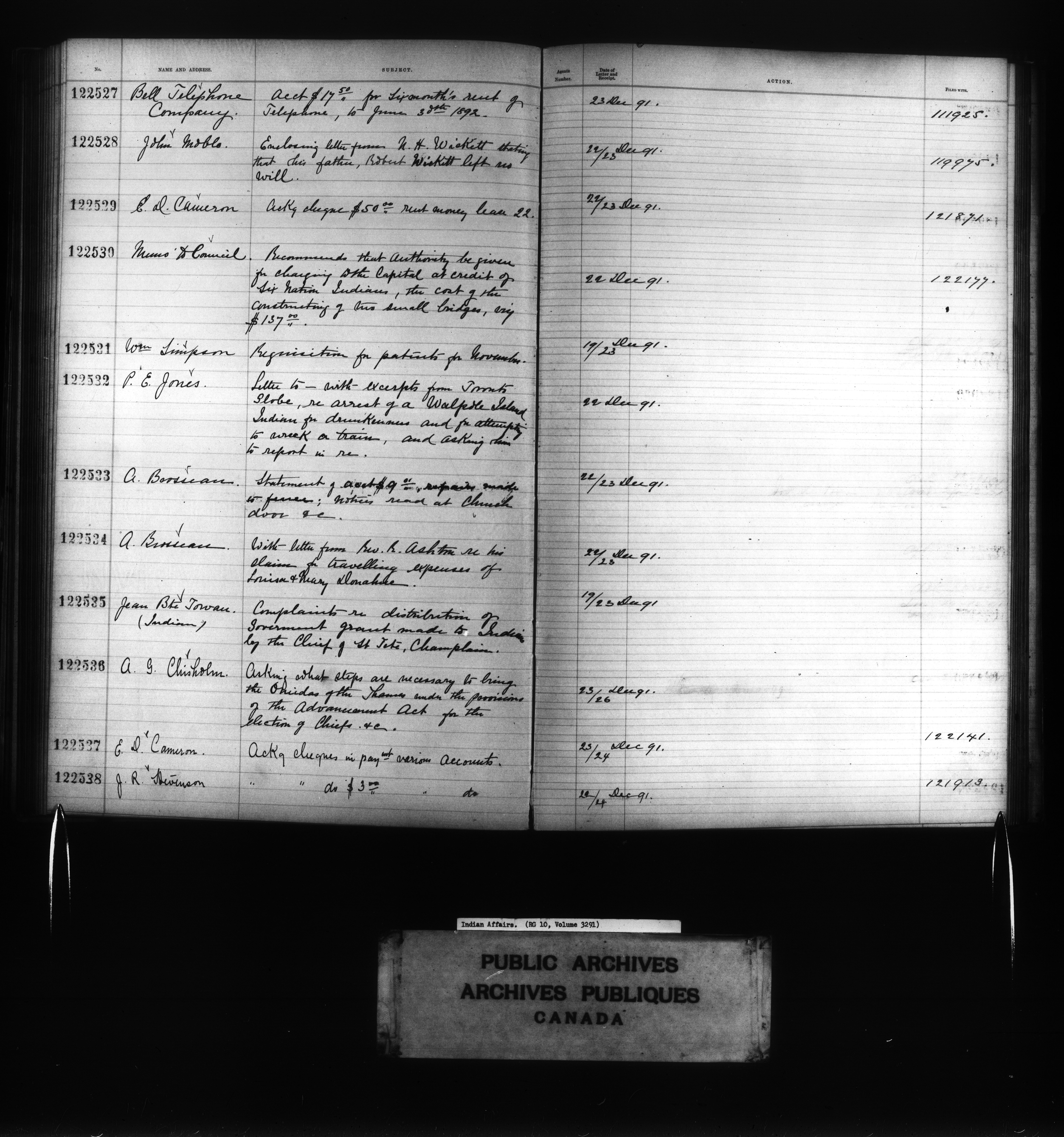 Department of Indian Affairs, Headquarters central registry system :registers, indices and indexed registers : C-10727
