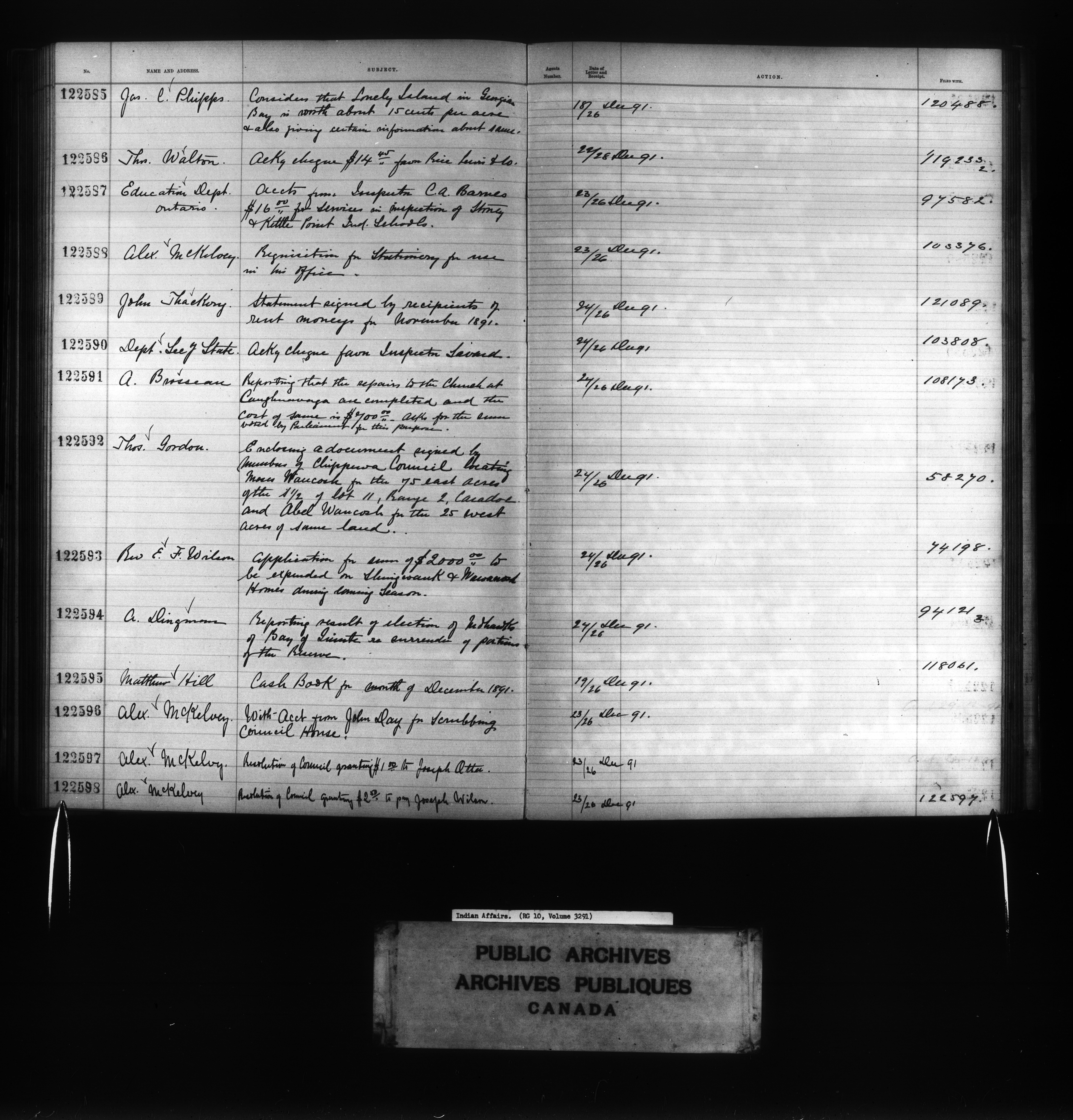 Department of Indian Affairs : Red Series register for Ontario and Quebec - 10727