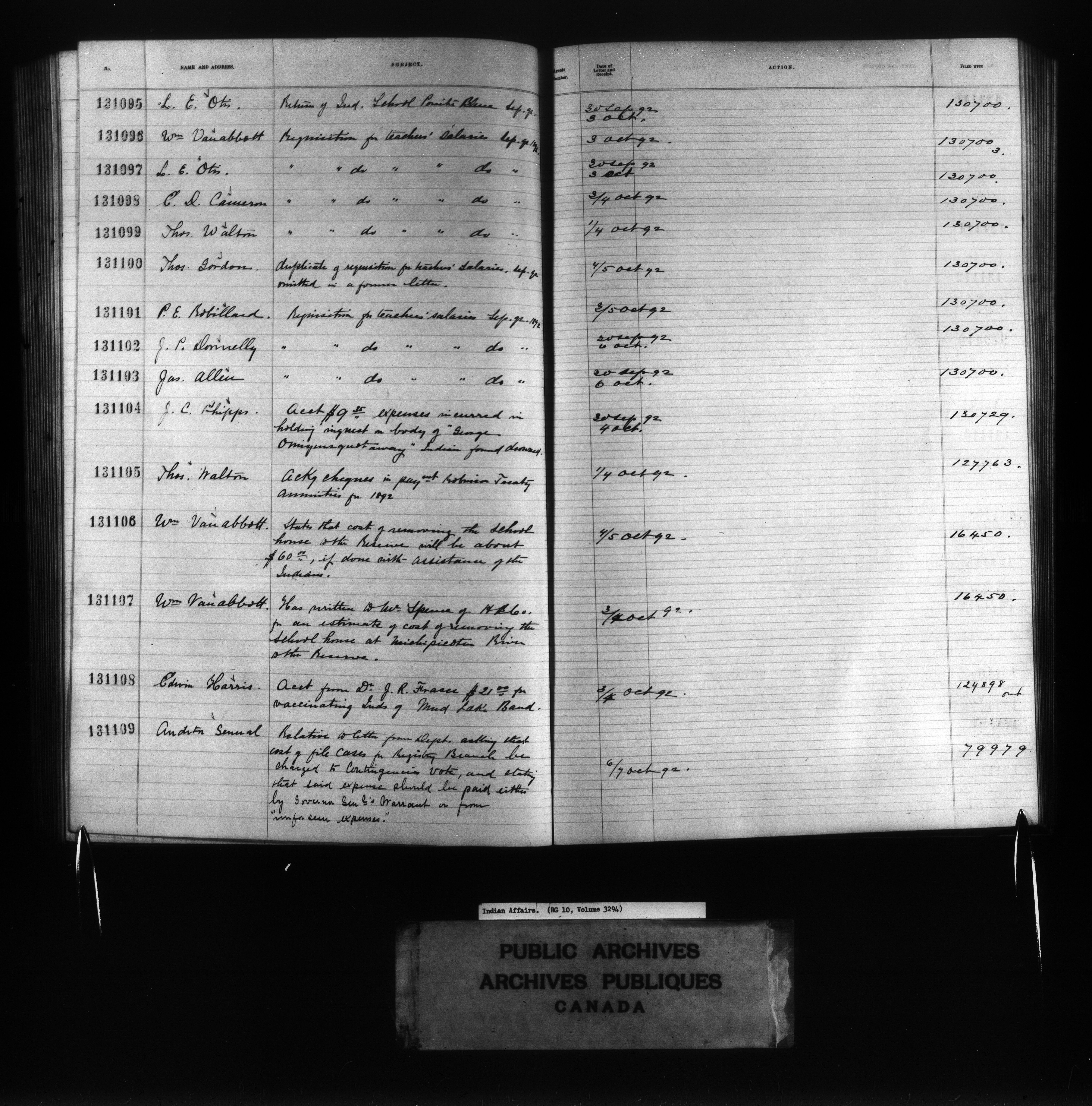 Department of Indian Affairs, Headquarters central registry system :registers, indices and indexed registers : C-10728
