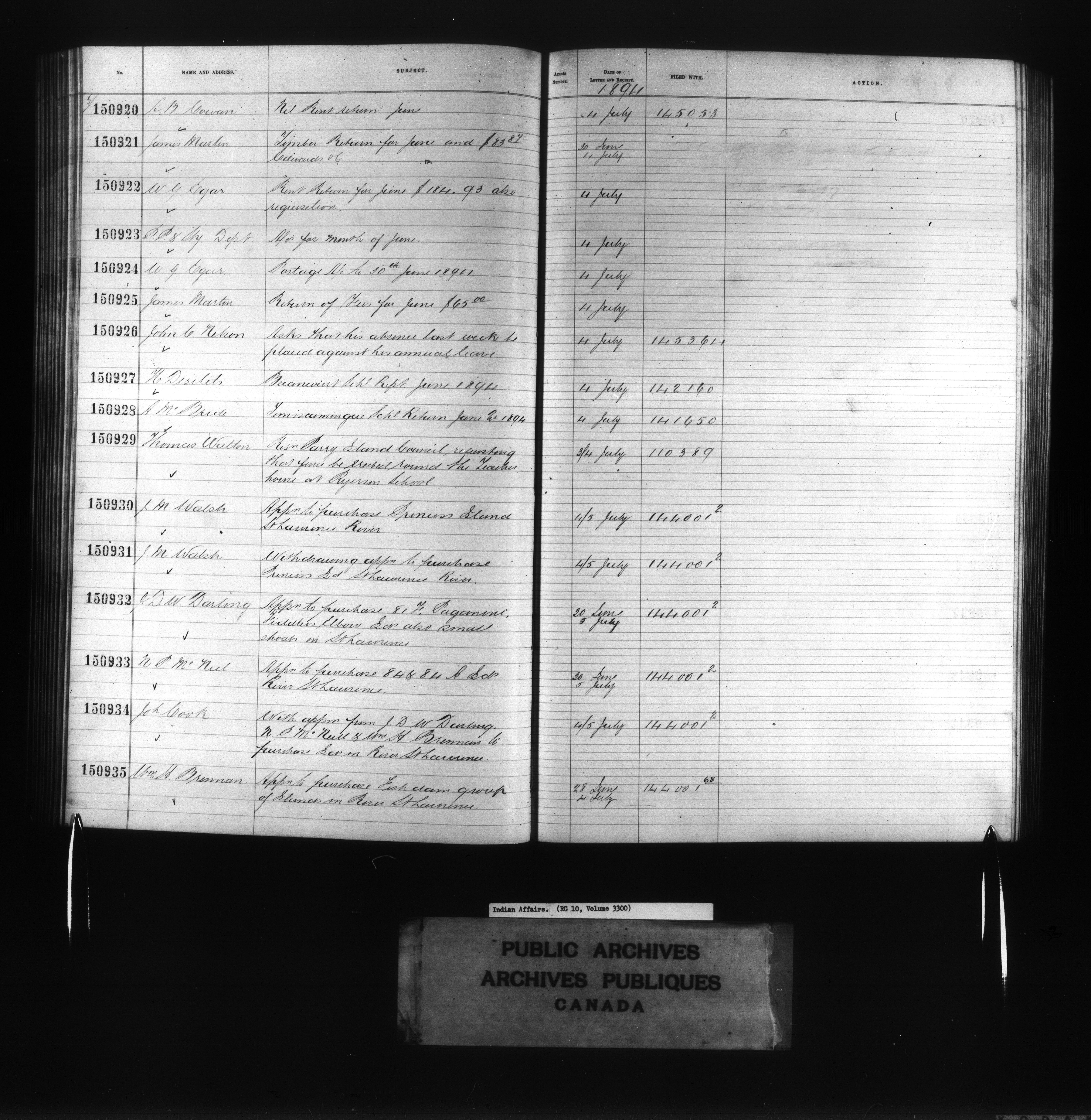 Department of Indian Affairs : Red Series register for Ontario and Quebec - 10730
