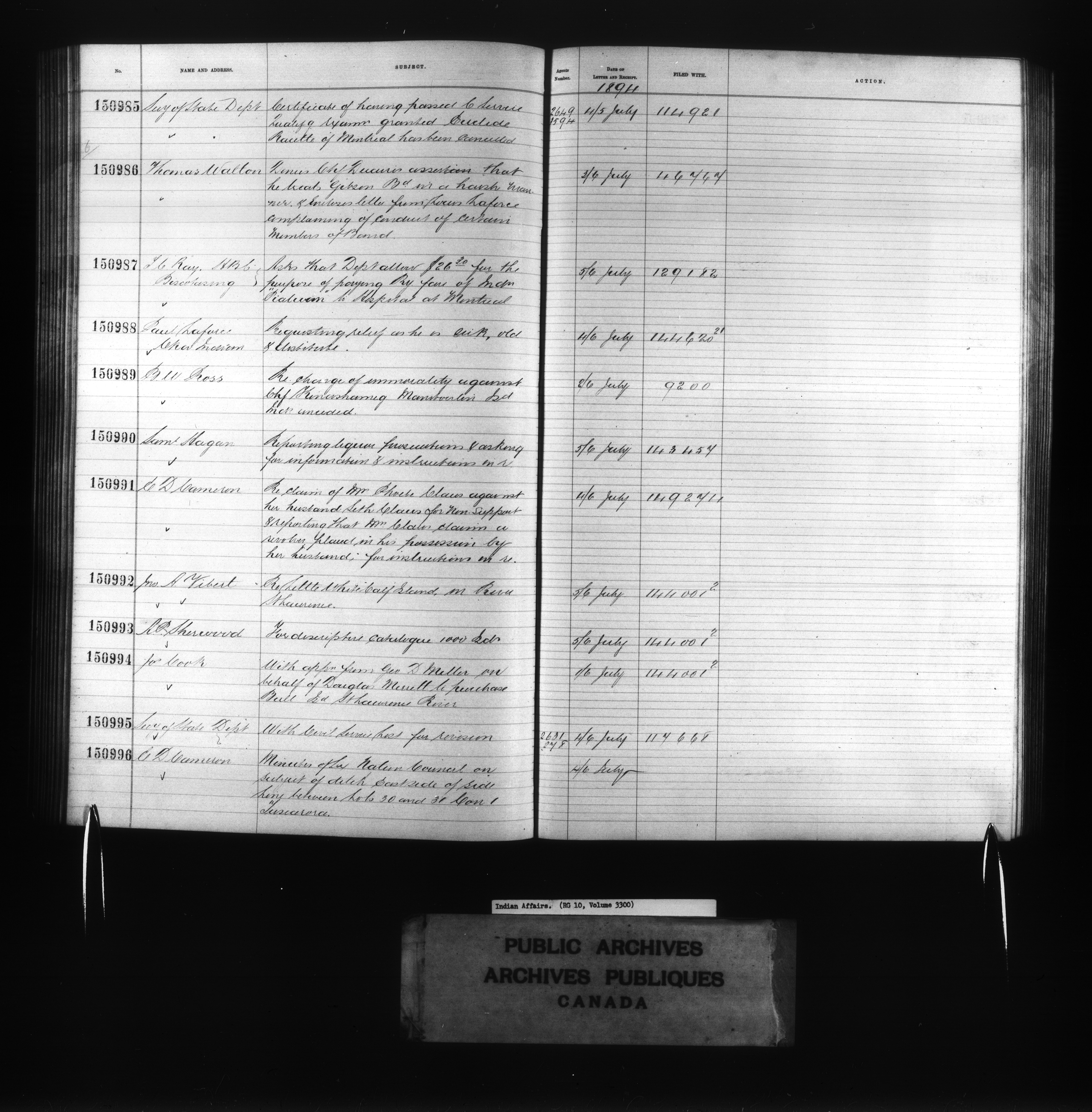 Department of Indian Affairs : Red Series register for Ontario and Quebec - 10730