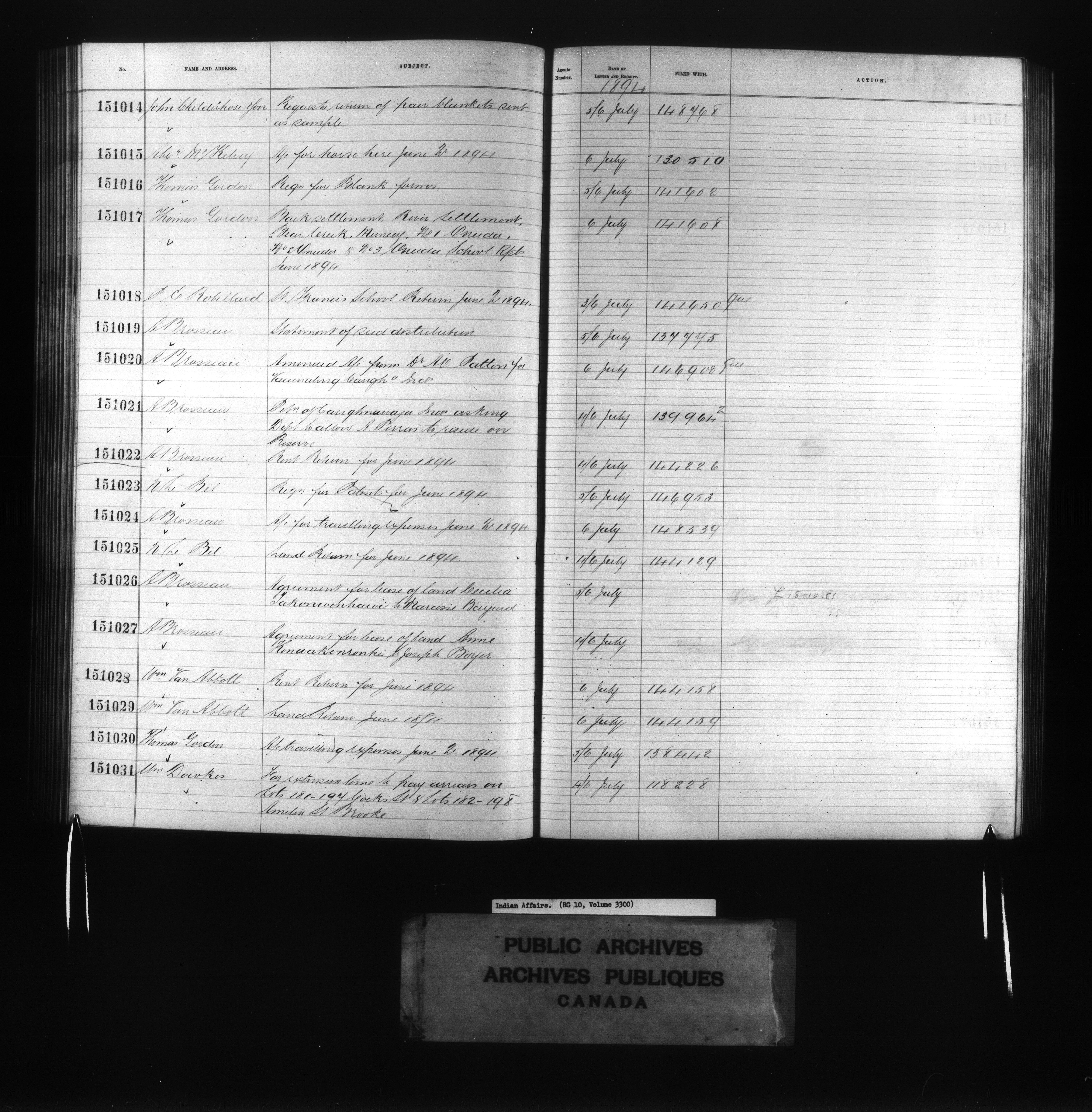Department of Indian Affairs : Red Series register for Ontario and Quebec - 10730