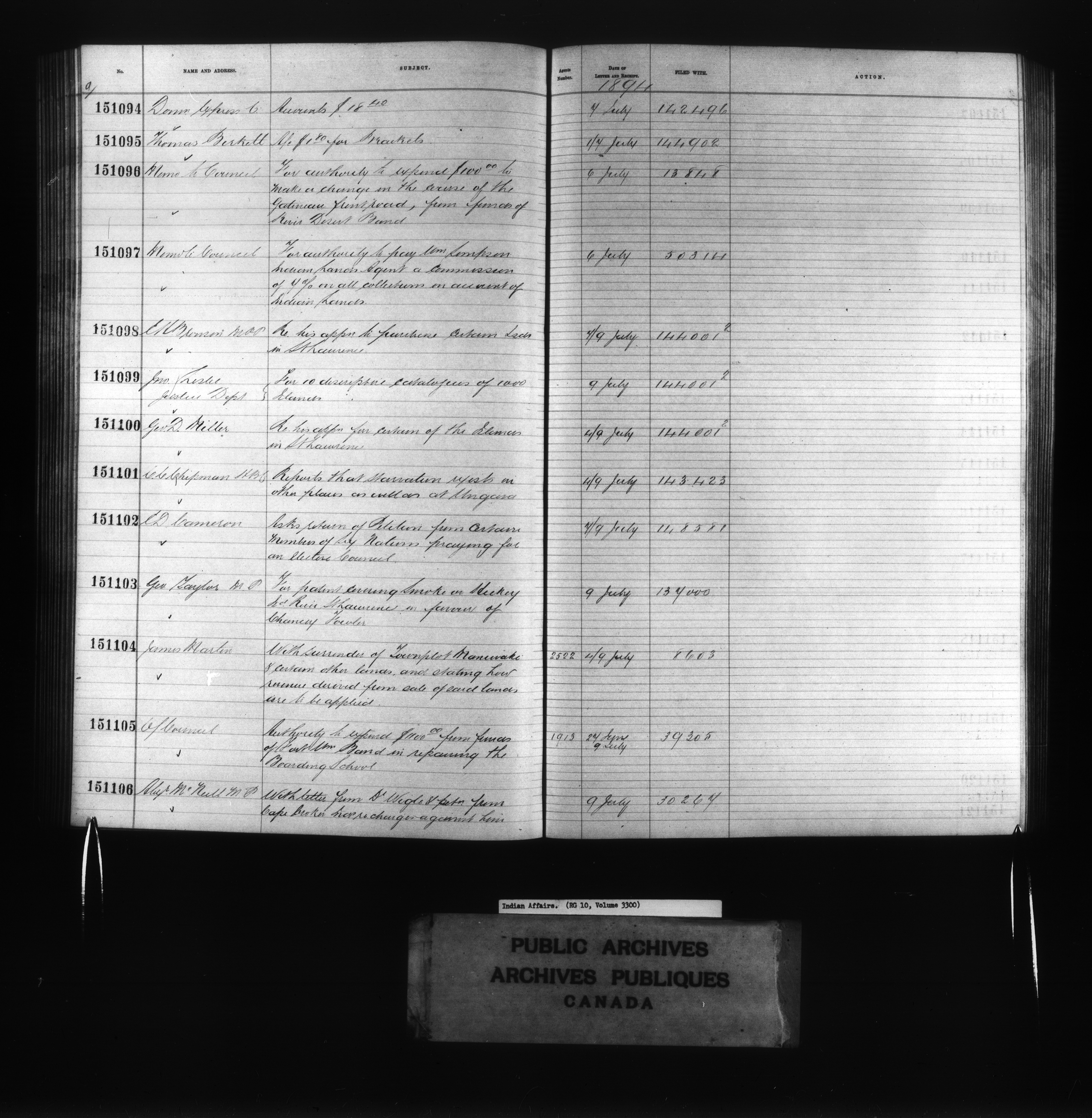 Department of Indian Affairs : Red Series register for Ontario and Quebec - 10730