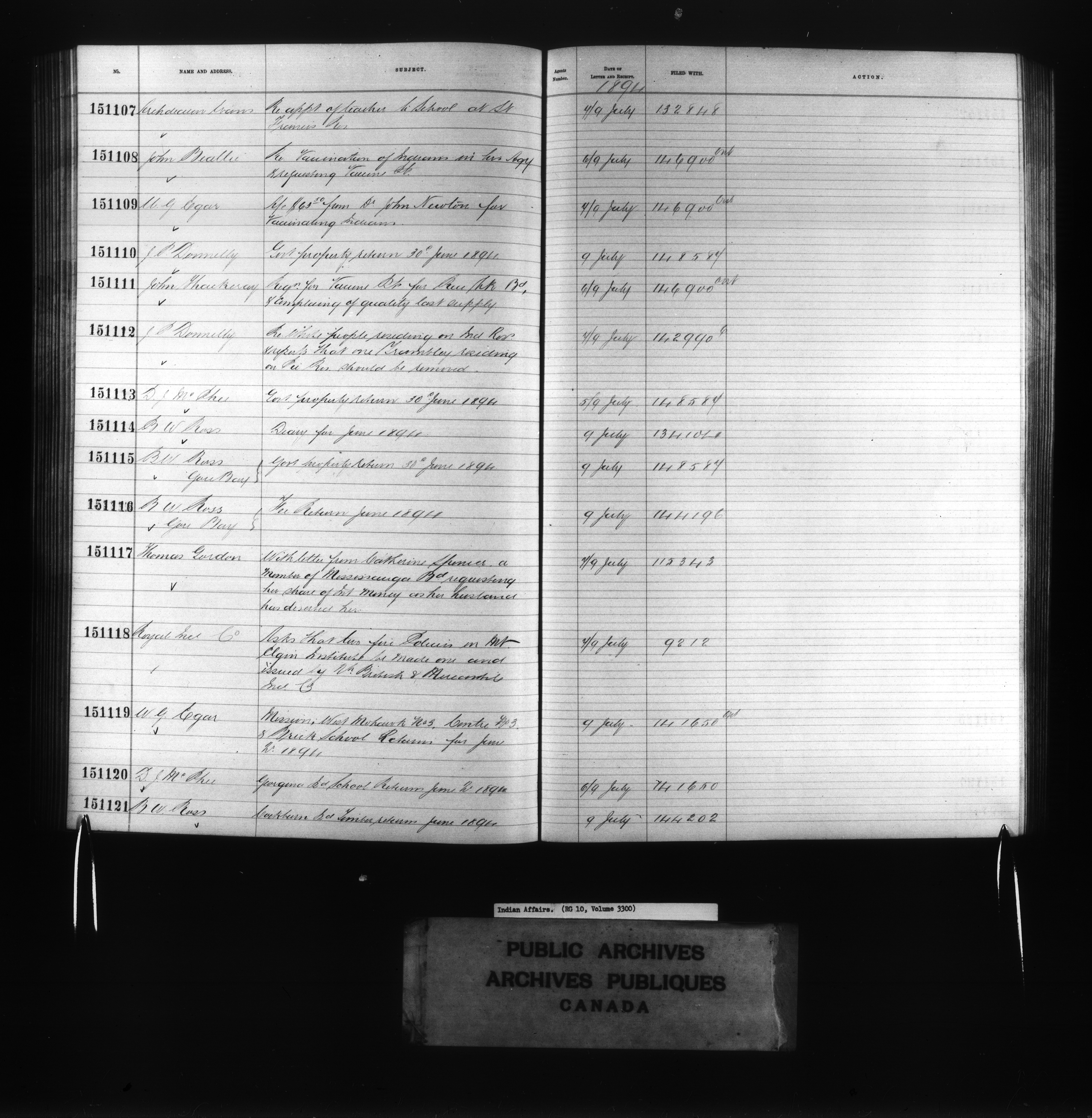 Department of Indian Affairs : Red Series register for Ontario and Quebec - 10730